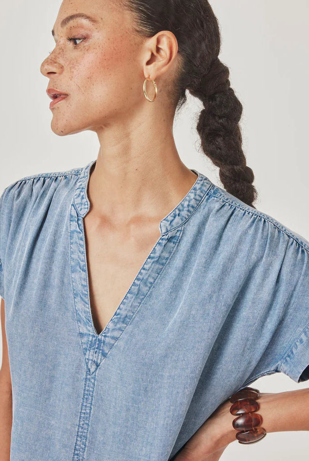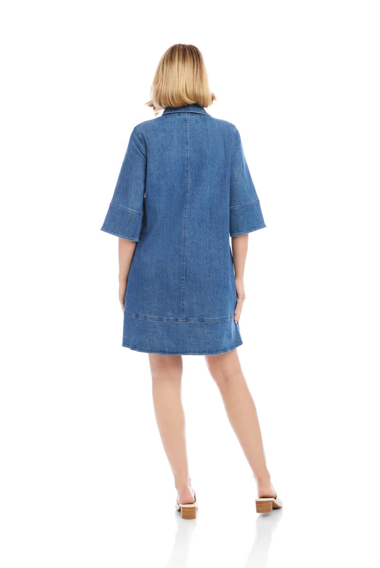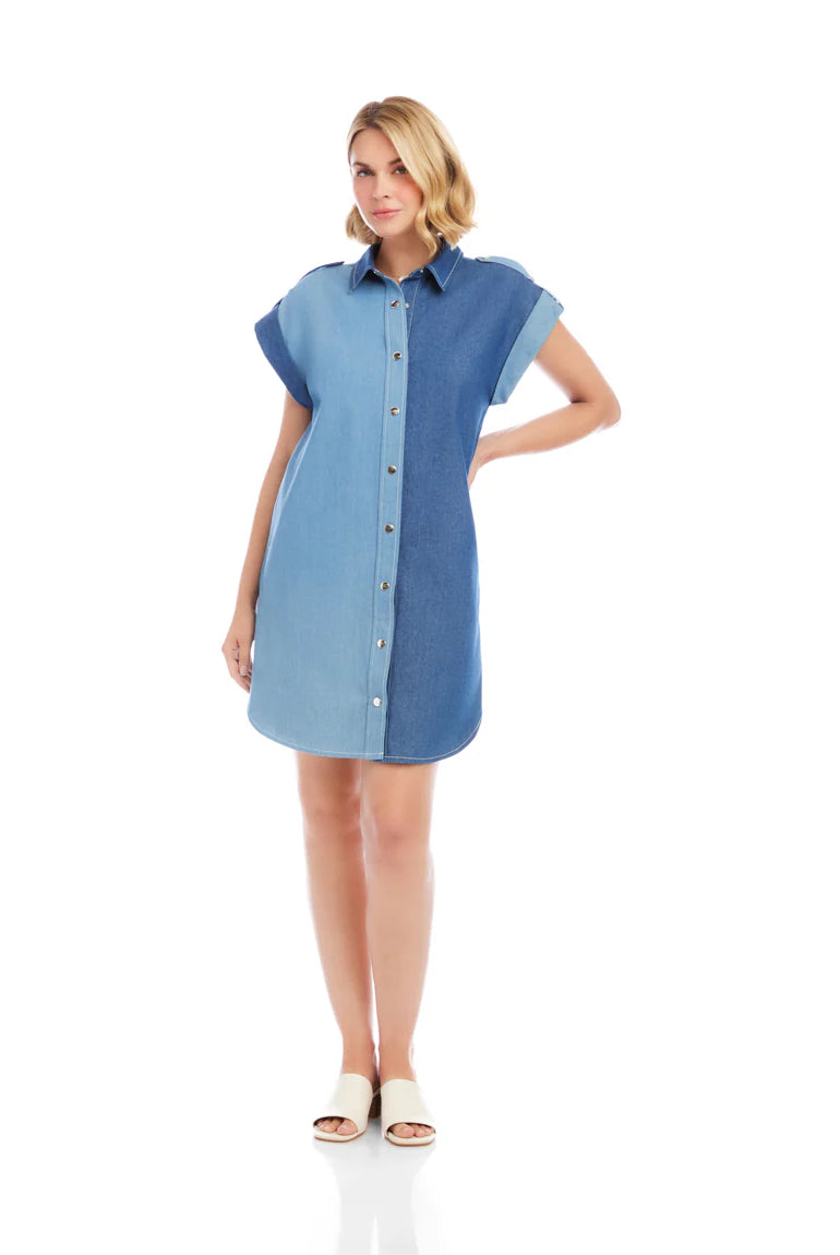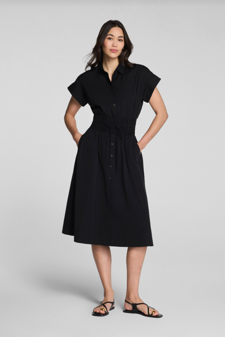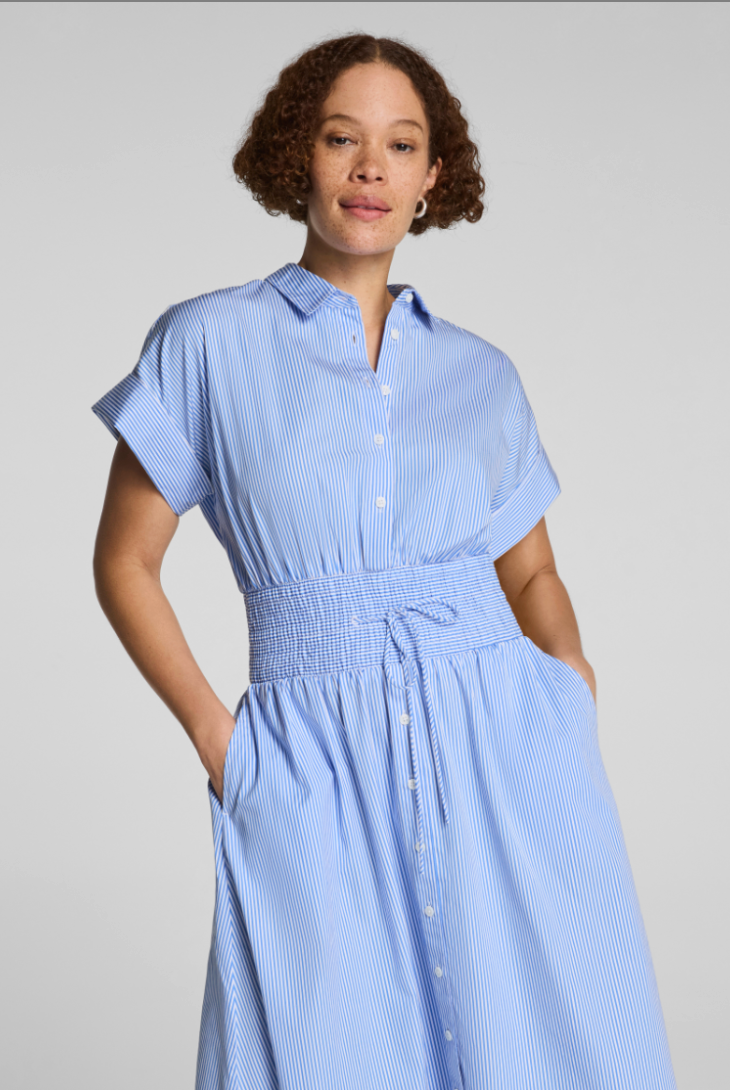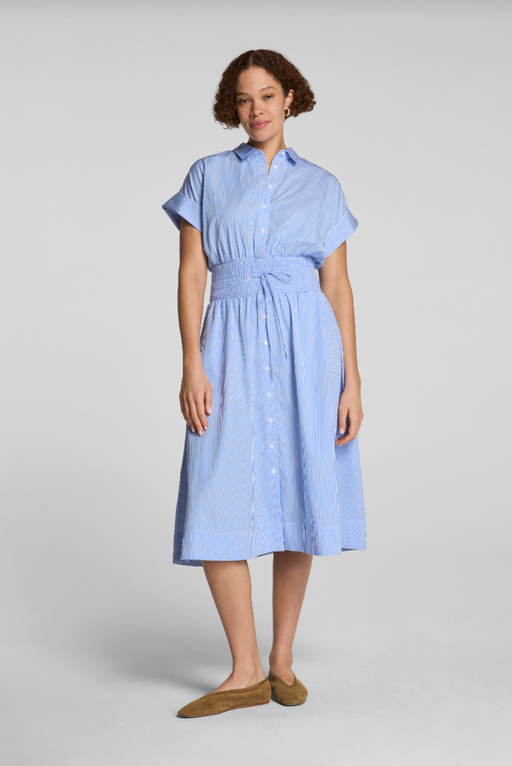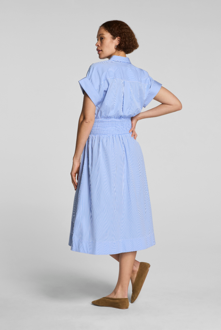 Poplin Smocked Shirt Midi Dress- Blue/ Classic White