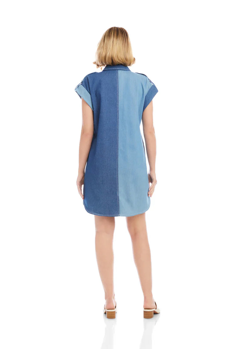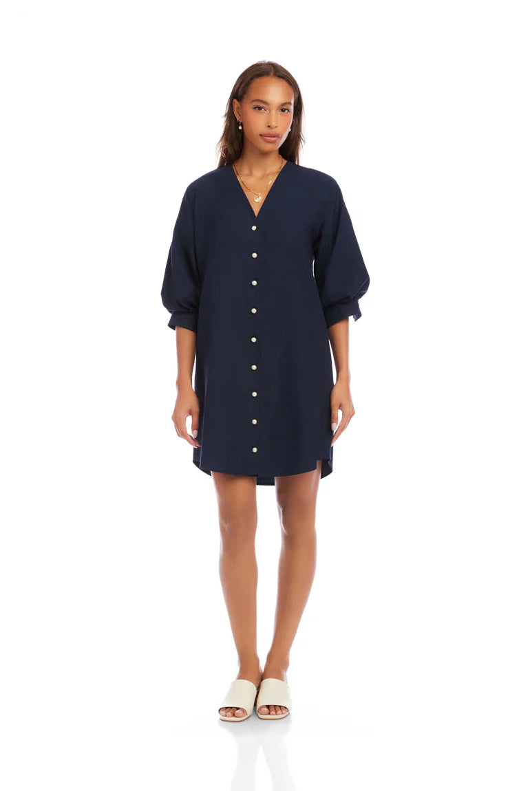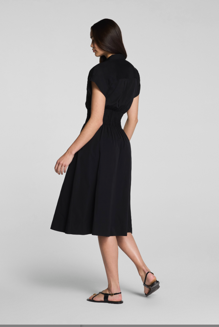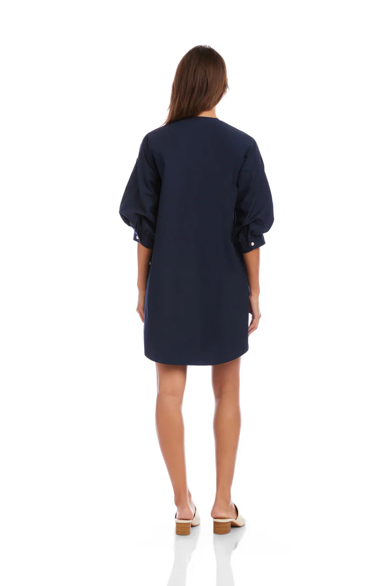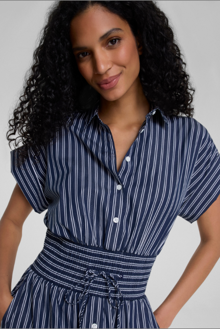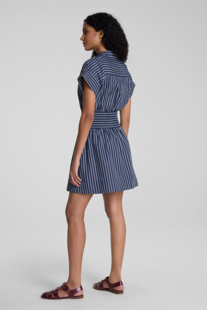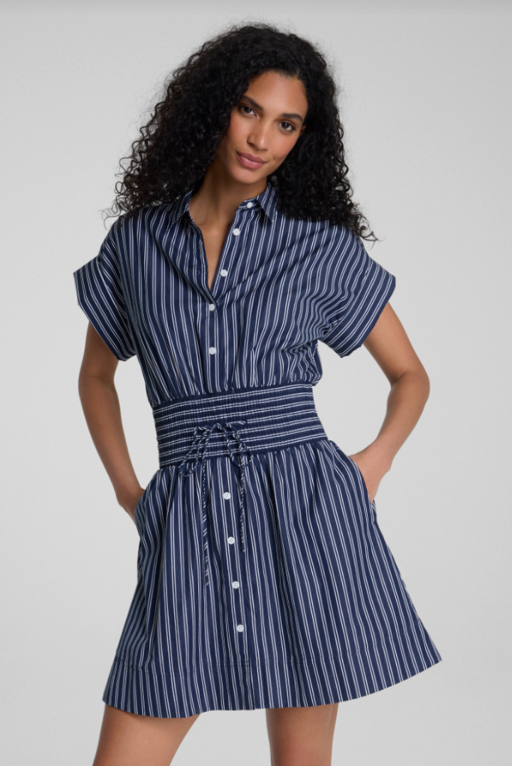 Poplin Smocked Mini Shirt Dress- Timeless Navy/ Classic White
