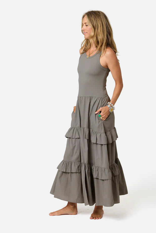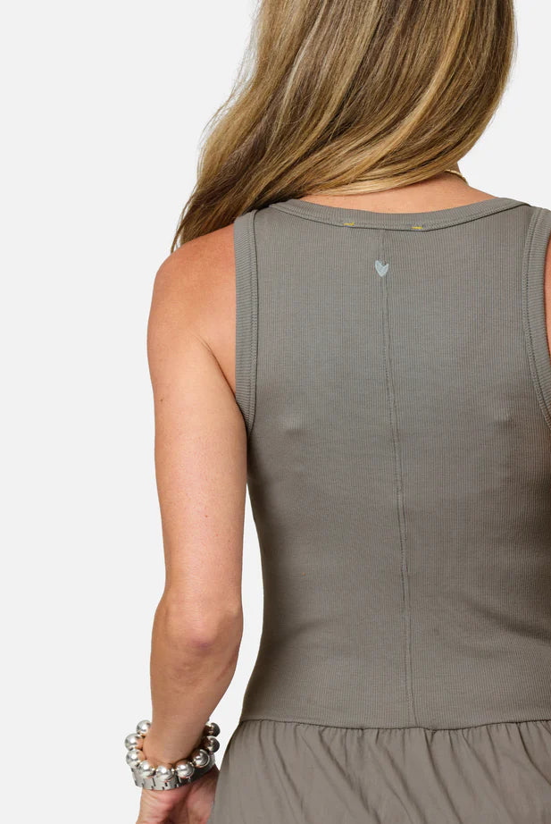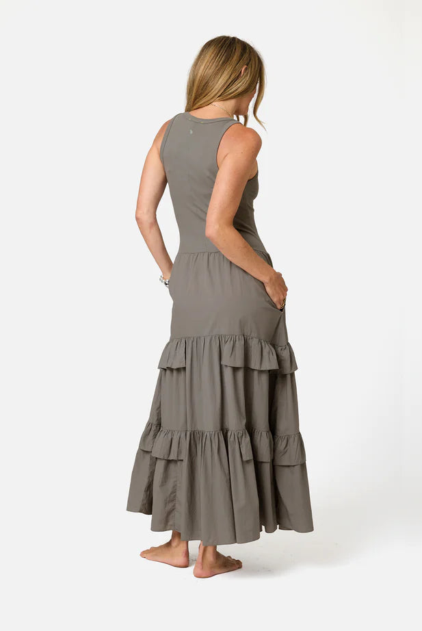 Bianca Shirred Bodice Dress- Green Blue Stripe