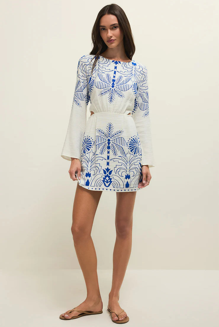 Tahina Airy Palm Mini Dress- Nautical Cobalt Blue