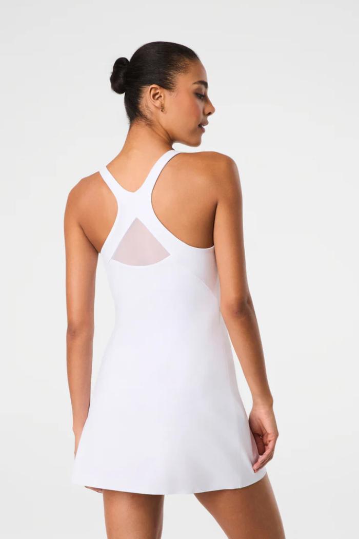 Designed for both high-performance and style, our SPANXshape™ Get Moving V-Neck Dress is made from breathable, sweat-wicking fabric with 4-way stretch for maximum comfort. This versatile activewear style features built-in SPANXshape™ Booty Boost® shorts for targeted core, hip, and thigh compression, and features hidden side pockets to store your essentials. Plus, our patent-pending Take Off Technology makes bathroom breaks easy and fuss-free. With mesh back panel for enhanced ventilation, this A-line dress is made to move.