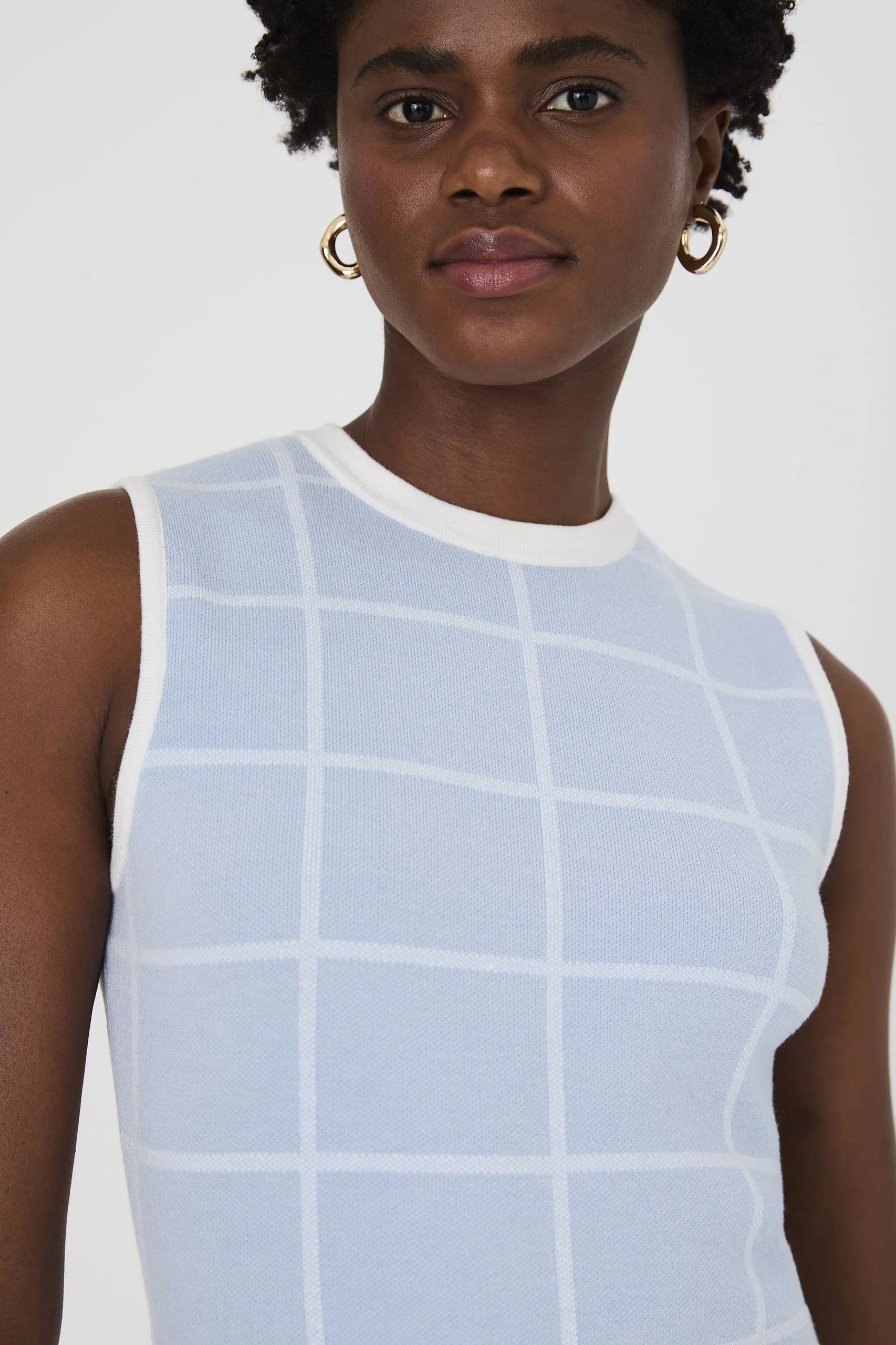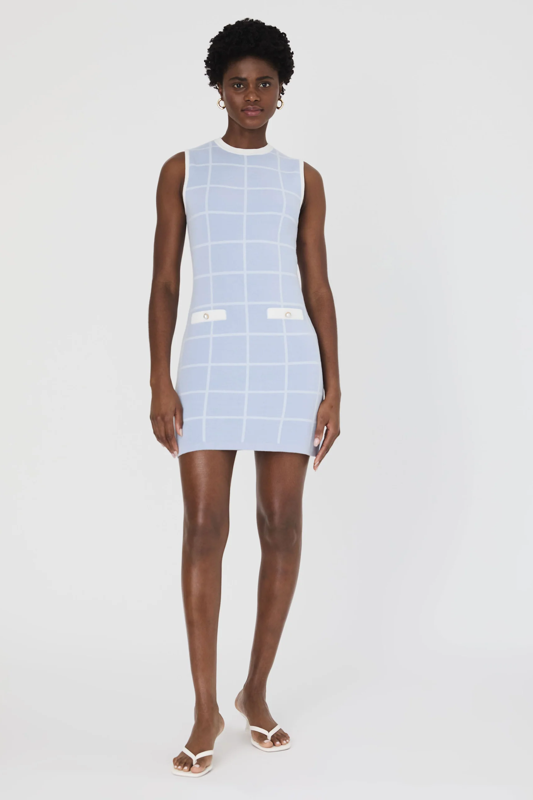 Check Sleeveless Crew Dress- Sky Blue/ Summer White