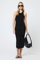 ndulge in luxurious comfort and style with our Cosysoft Racerback Midi Dress. This bodycon dress features a faux-sleeve waist tie and elegant racerback design. Perfect for vacation and weekend wear, this dress effortlessly combines fashion and functionality. Elevate your wardrobe with this versatile and sophisticated piece.