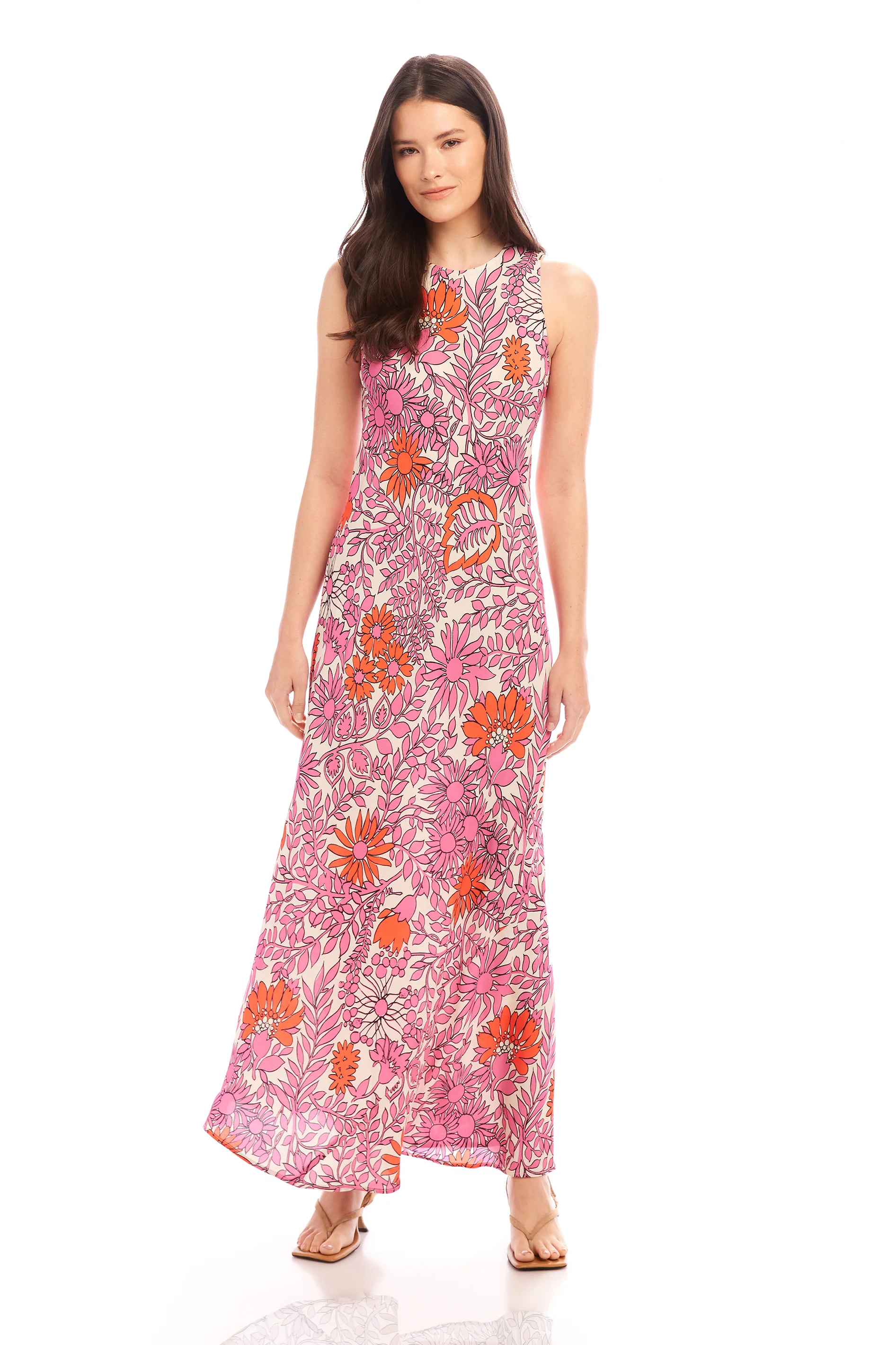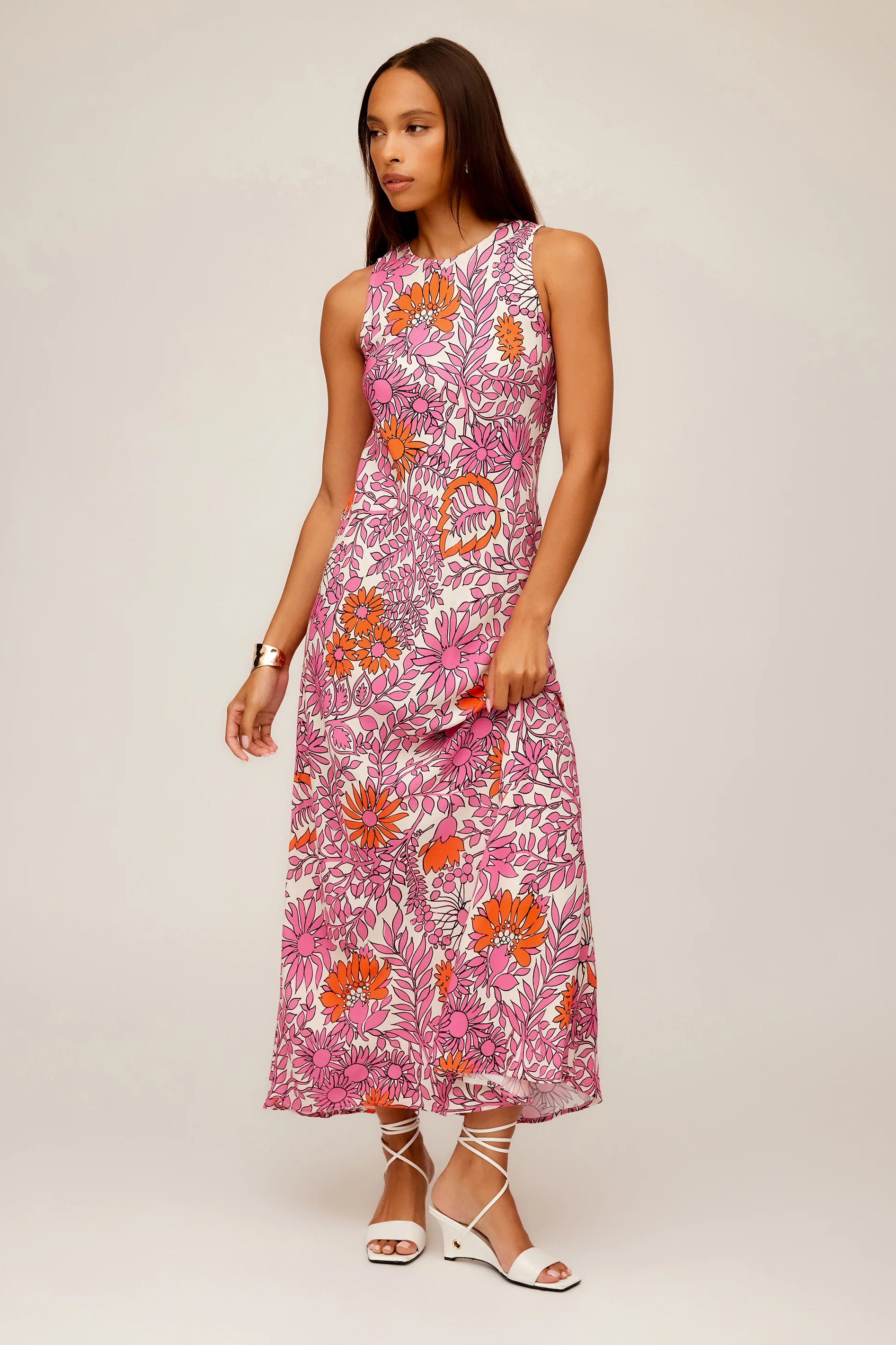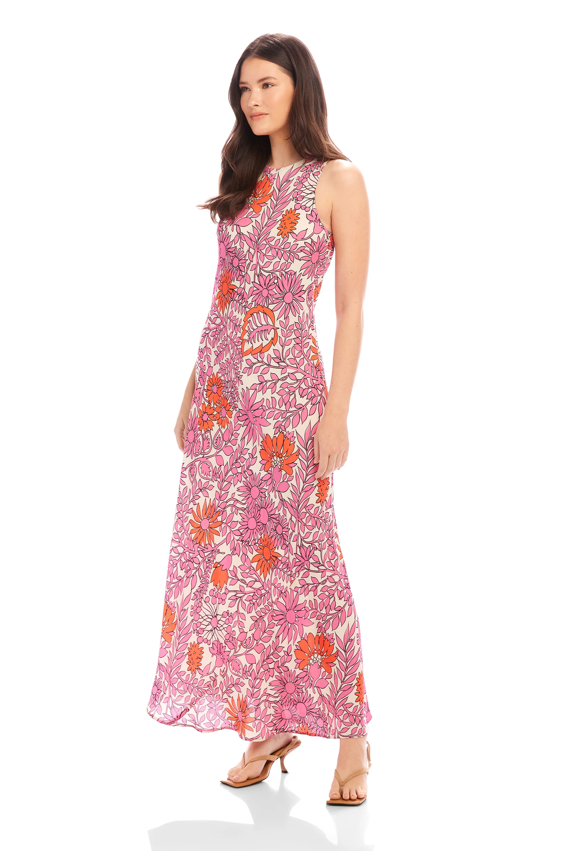 The Dani Maxi Dress is the perfect choice for a special springtime event. Its retro floral design and biased cut offer a unique and chic look, while its crepe material adds a touch of luxury. Stand out and make a statement with this elegant and stylish dress.