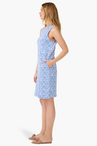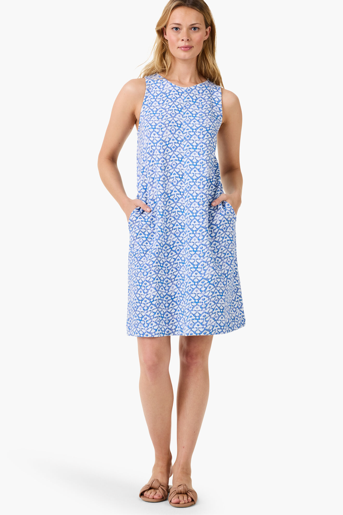 Dotty Ikat Sleeveless Shift Dress- Blue Multi