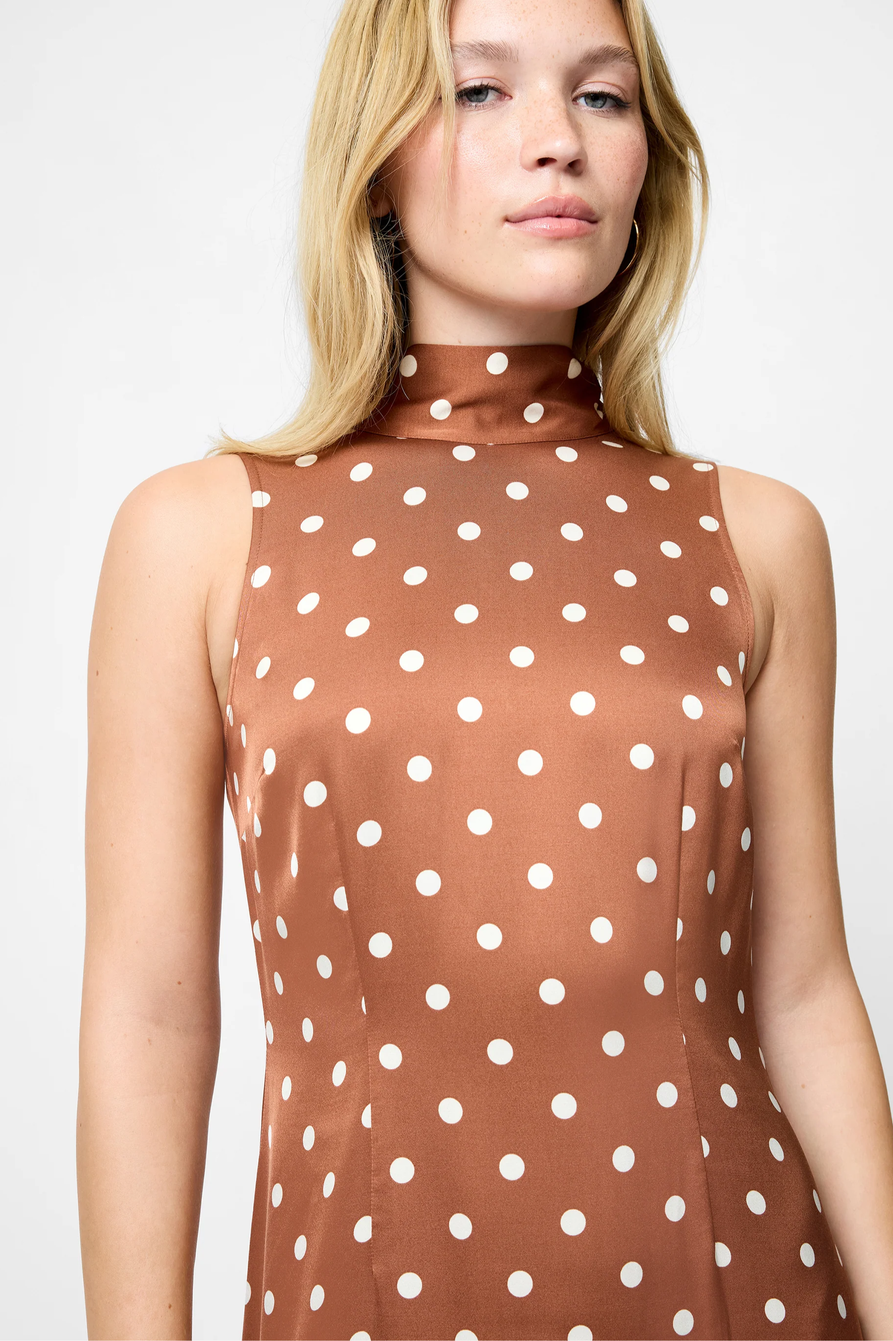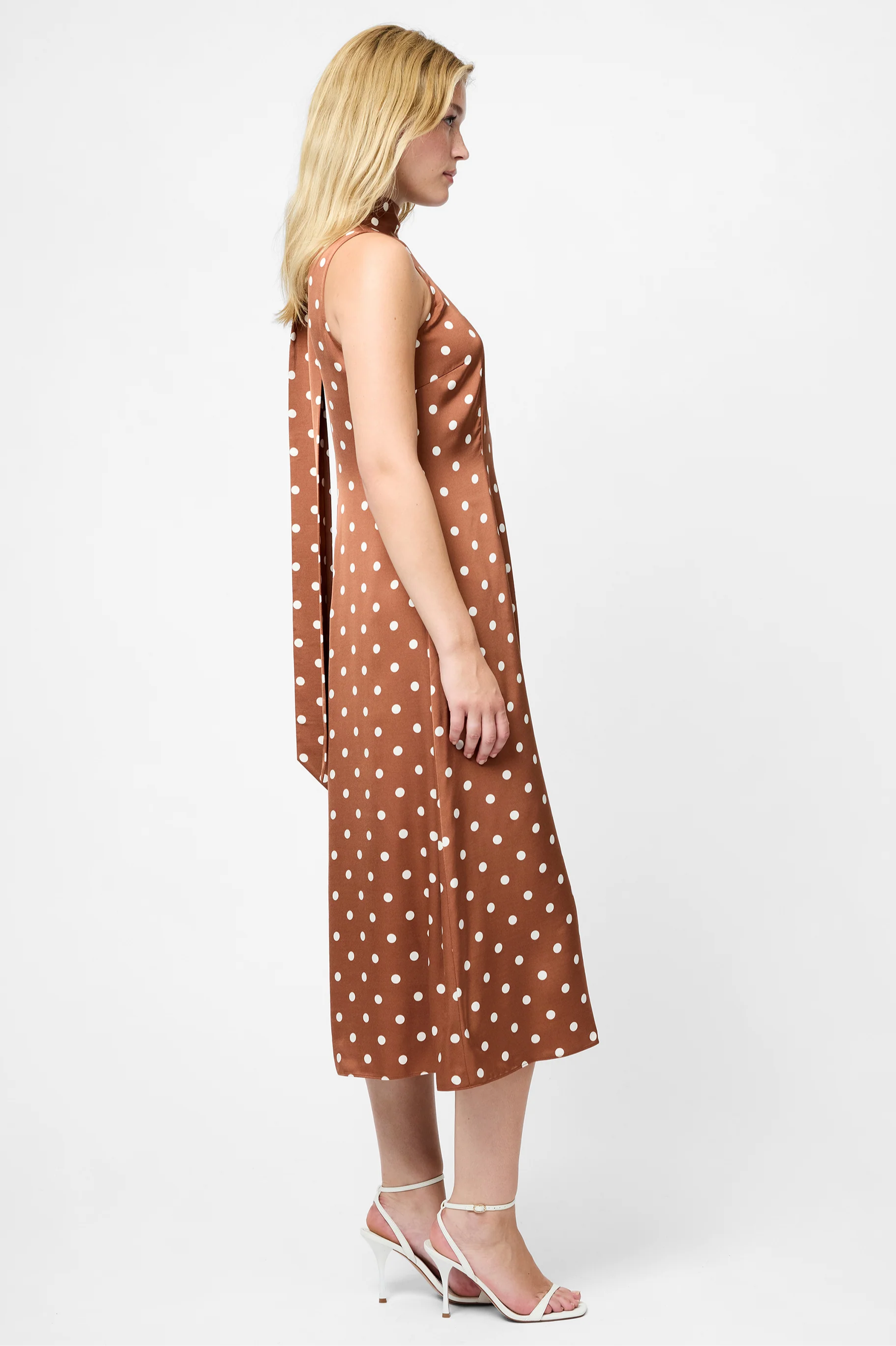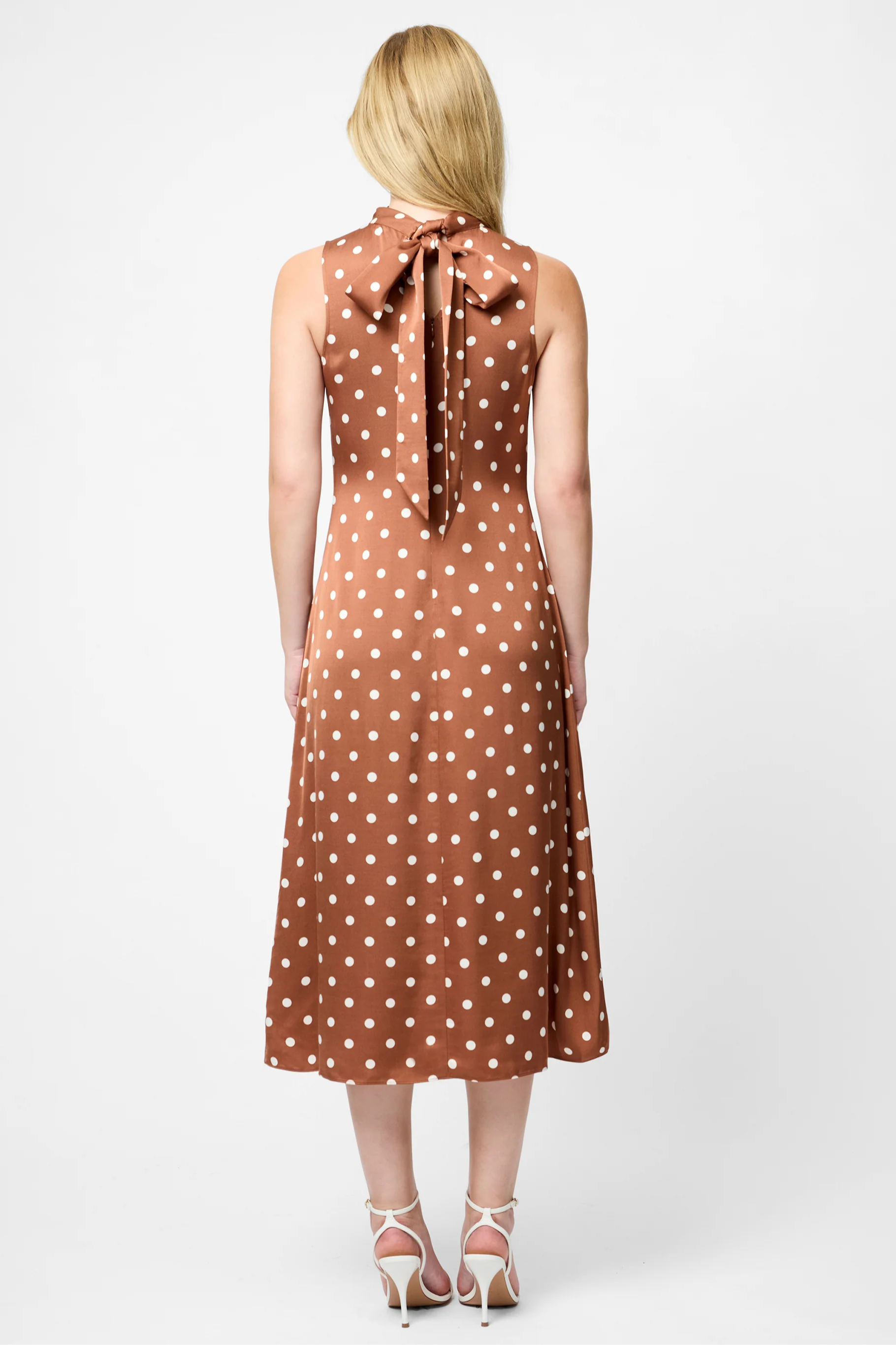 Ennis Satin Slvlss Bow Midi Dress - Café Brown/Porcelain Cream