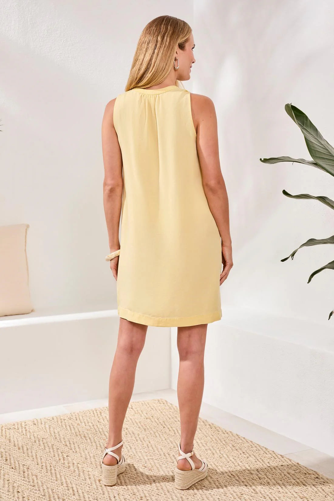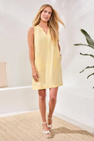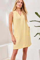Flowy Sleeveless V-Neck Dress- Lemon Grass