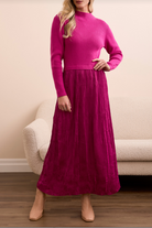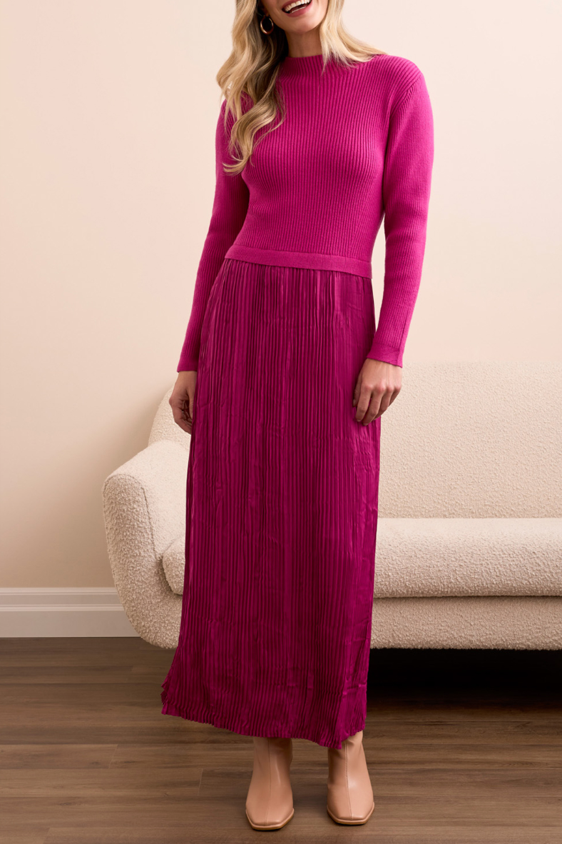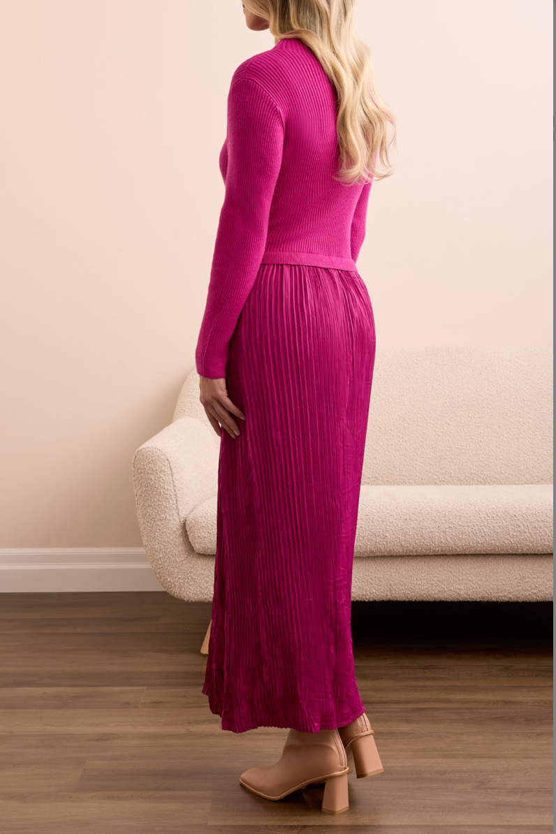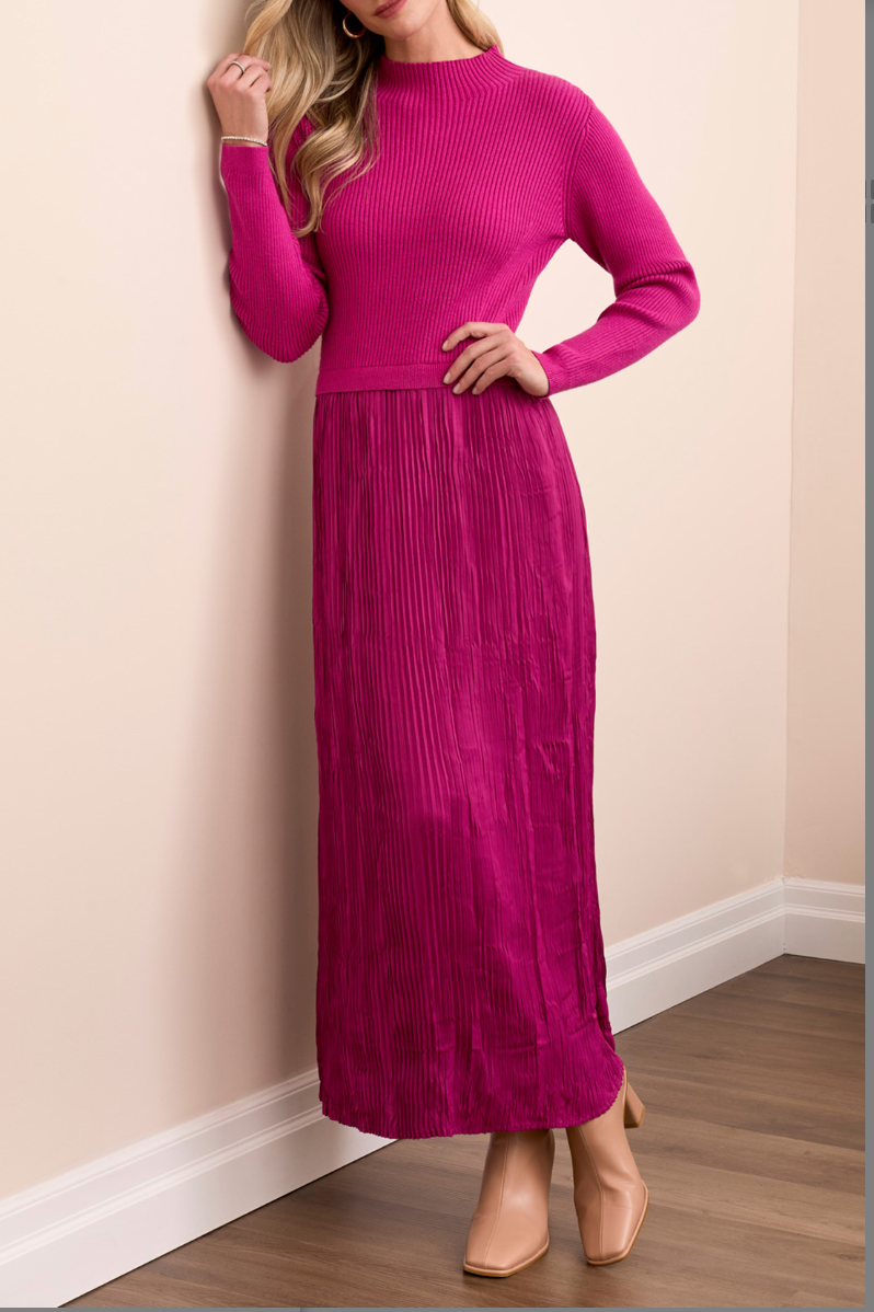 Long Sleeve Twofer Maxi Dress w/ Lining- Pink Flambe