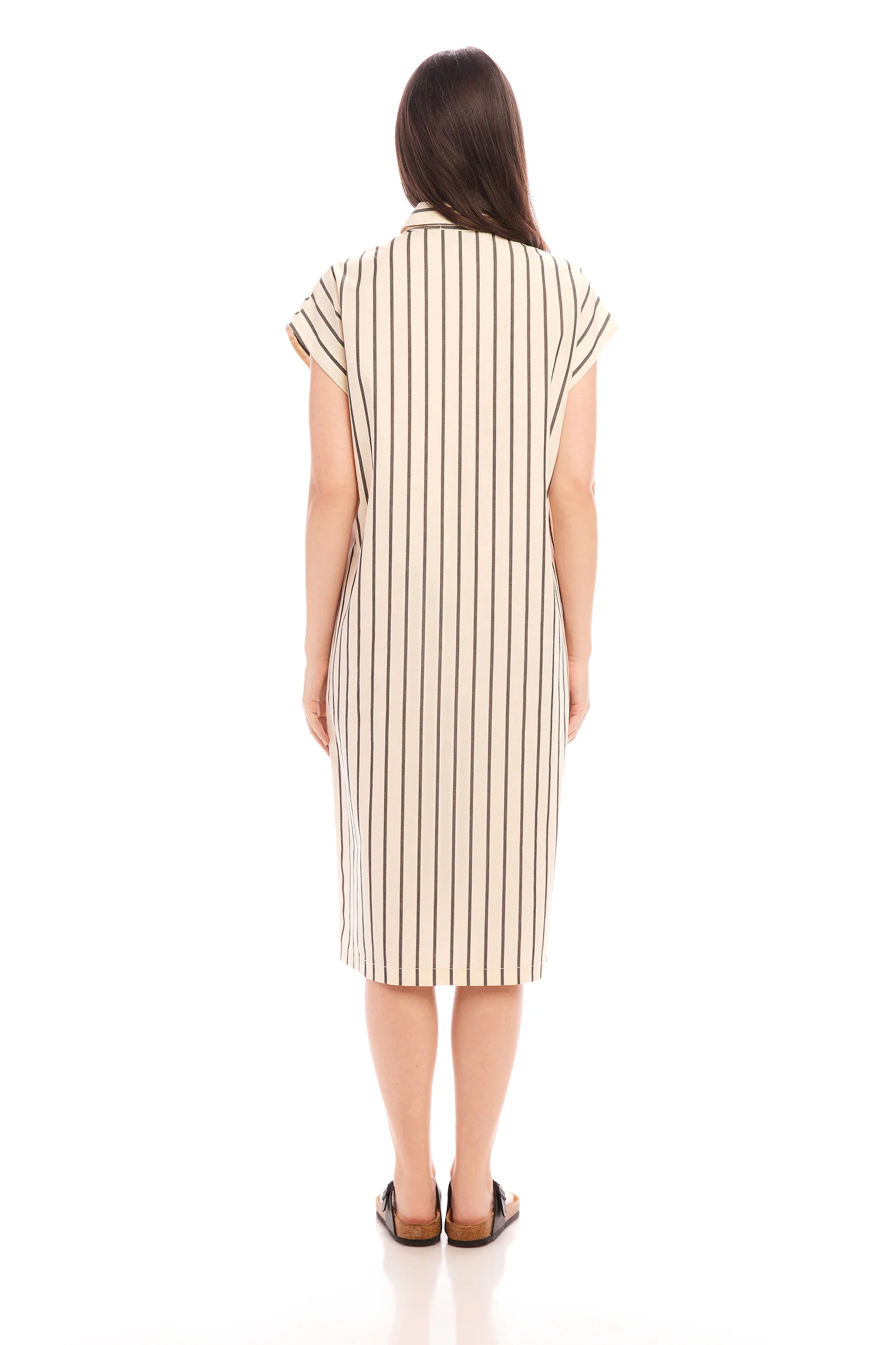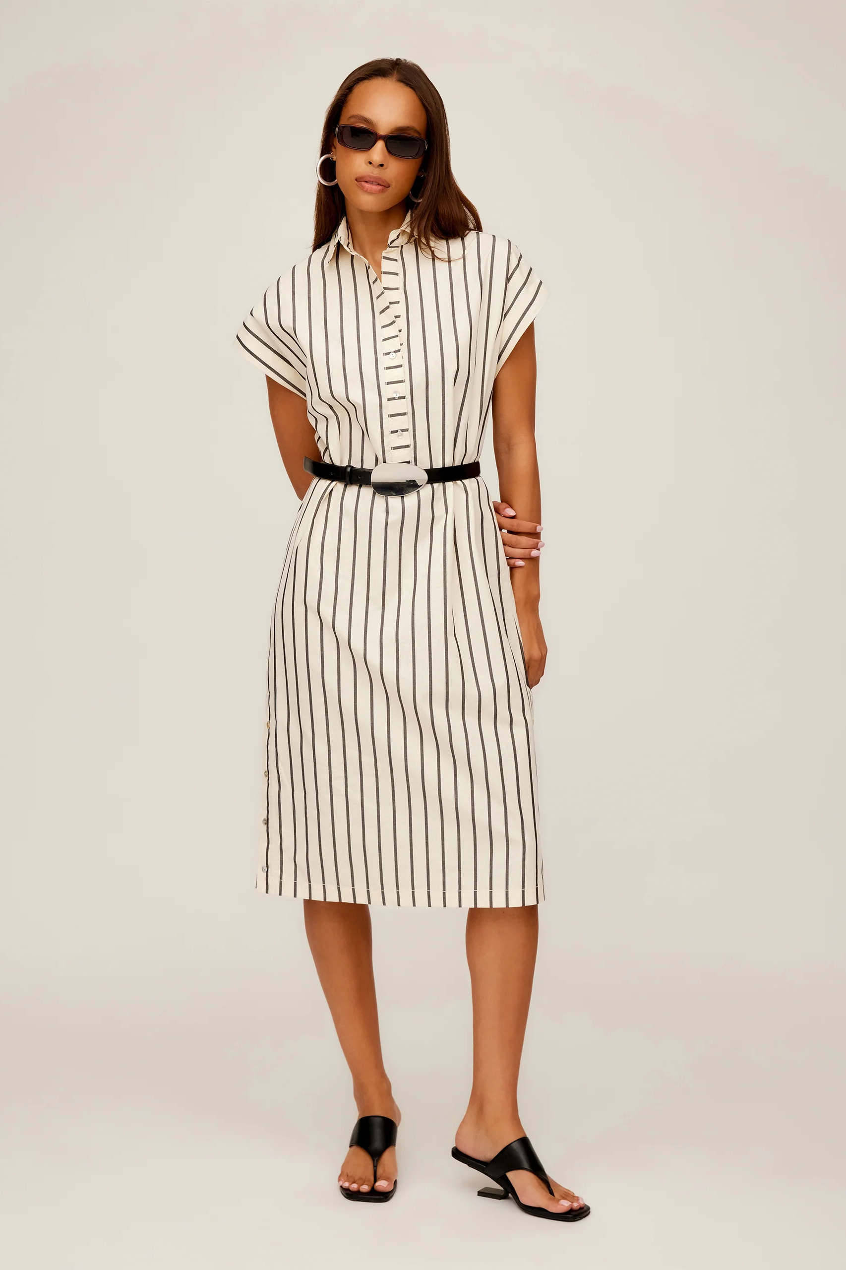 Achieve effortless style with our Lucia Dress. Made with high-quality stripe cotton material, this dress features a boxy fit that flatters any body type. Add a belt at the waist for a more fitted silhouette or leave it loose for a relaxed look. Functional buttons at the bottom slit and neck add a touch of functionality to this versatile piece. Dress up or down for any occasion.