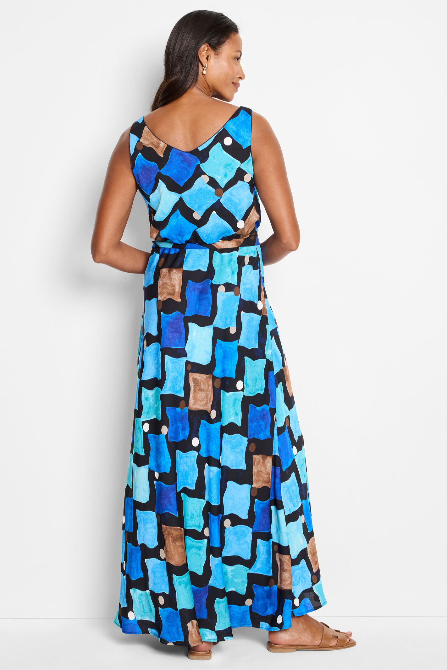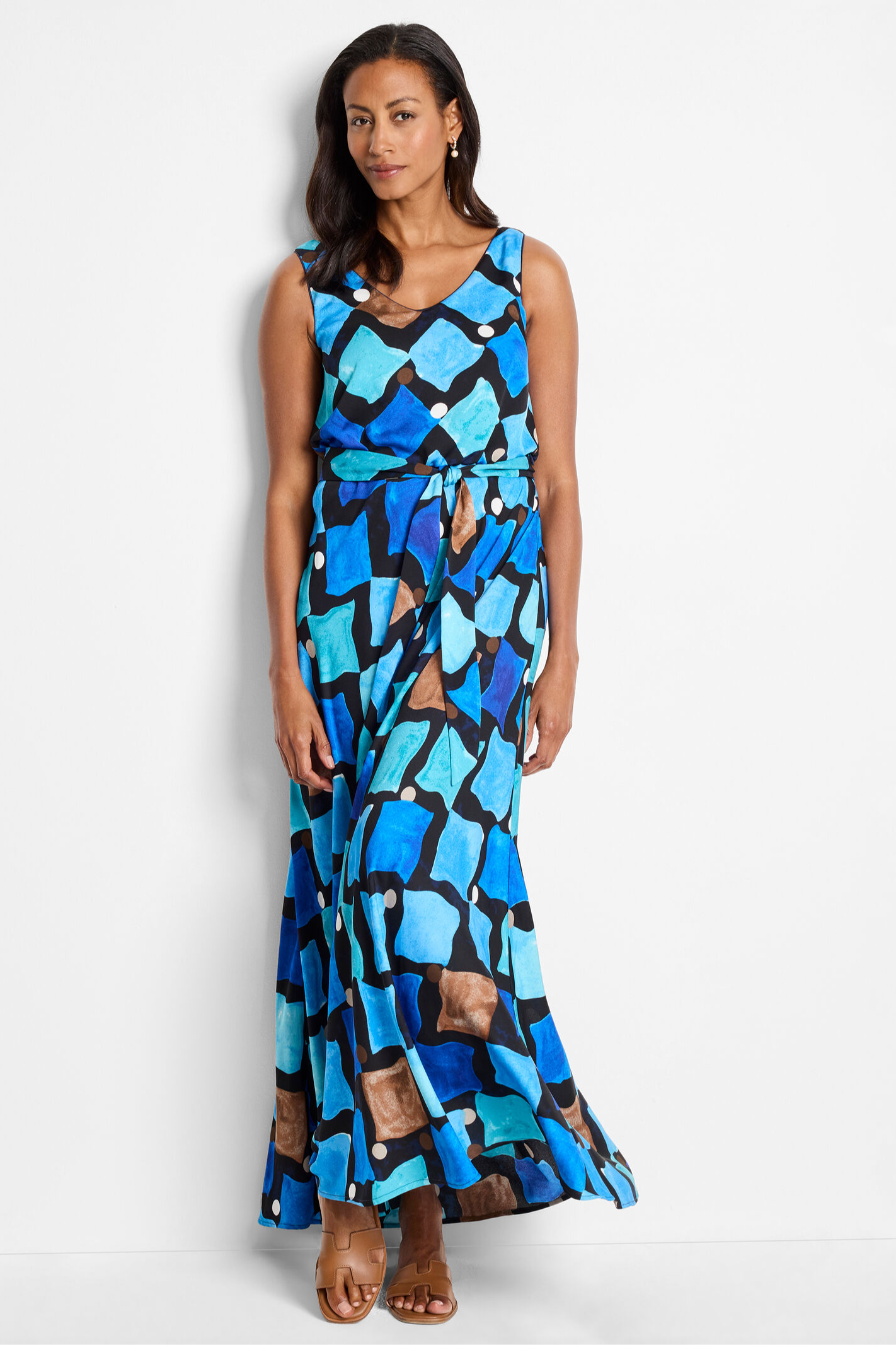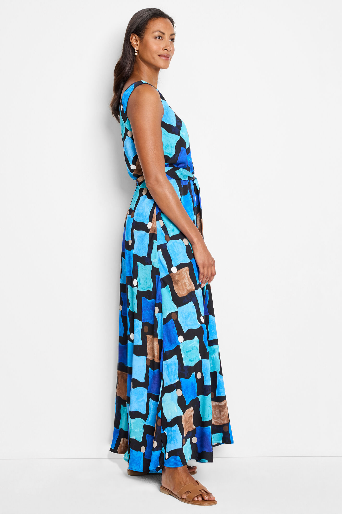 Our fan-favorite maxi silhouette Bianca, now with some fun added asymmetry at the shoulder that lifts the whole look. We think she's never looked better, especially with the Sea Glass Print. Perfect for casual events, work, or as an easy pull-on option when the weather gets warm. Returning are Bianca's lined bodice and a belt tie at the waist to create extra shape.