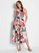 Meet Sienna, our latest must-have dress silhouette. Designed to look great under a jacket or cardigan, this dress is easy and all-day effortless. Sleeveless with a stand collar, V-neck placket, and tie front to create just as much shape as you'd like.