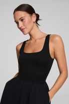 Our SPANXsmooth™ Jersey Scoop Neck Tank Midi Dress is made from lightweight, breathable, and easy-to-wear fabric you'll reach for again and again. With a smoothing, double-layer jersey up top that provides complete coverage, and a feminine, flared cotton skirt on bottom, this midi dress—with pockets!—is the perfect combination of effortless ease and practical polish.