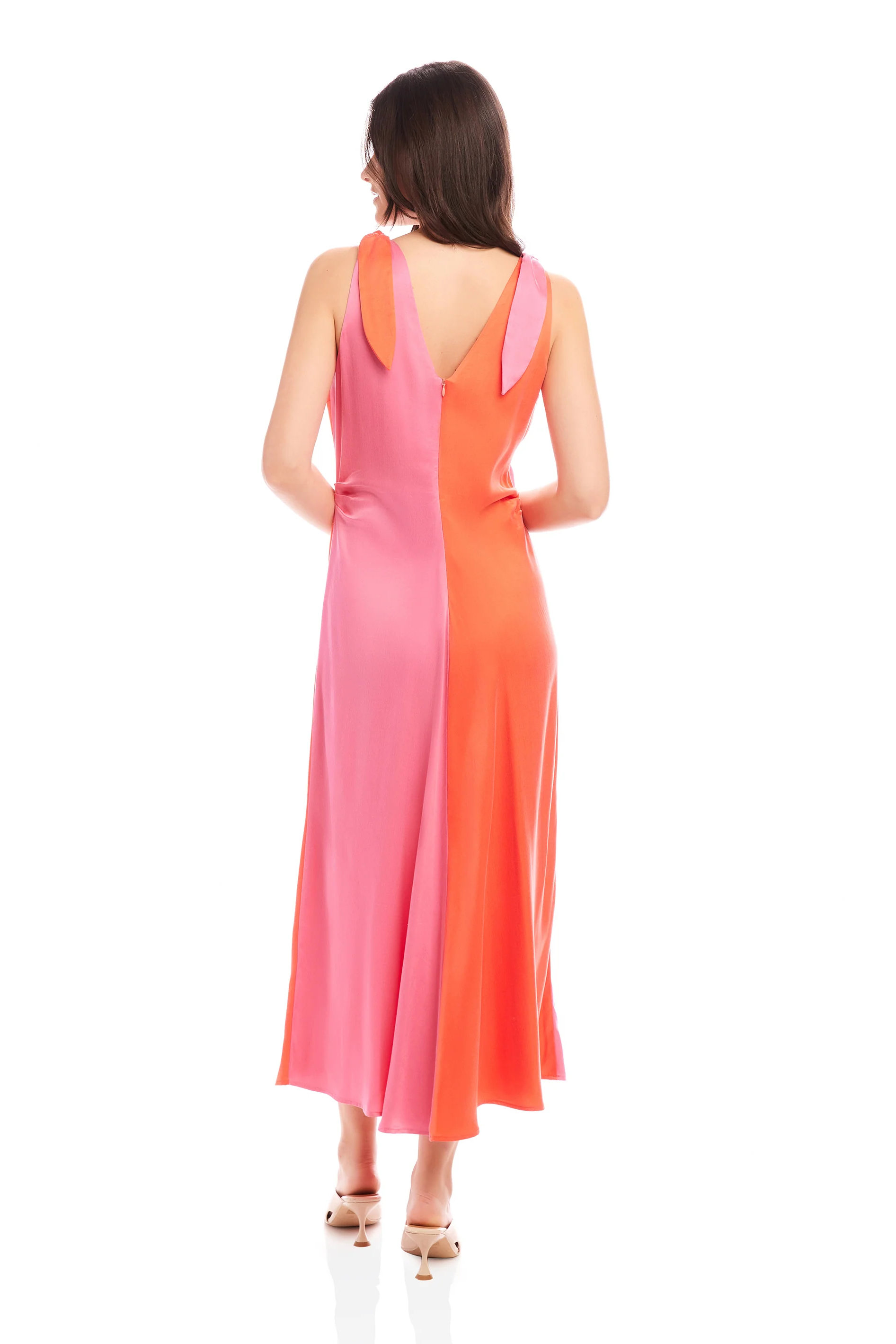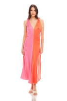 Verity Two-Tone Midi Dress- Coral/Pink