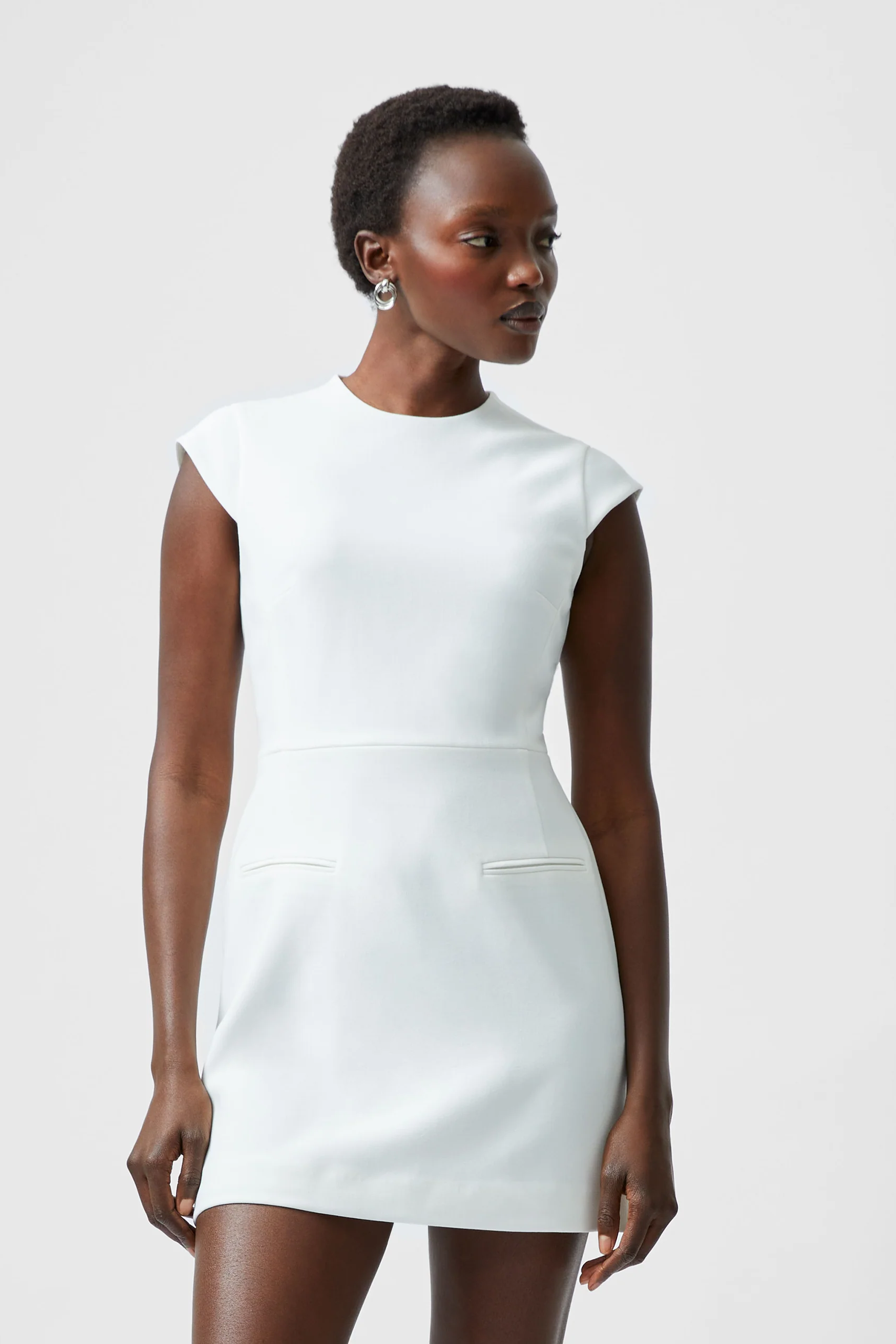 Elevate your style with our Whisper Mock Neck Mini Dress. This piece features a sophisticated mock neck, cap sleeves, and a faux welt pocket. The A-line silhouette flatters your figure, making it the perfect choice for any occasion.