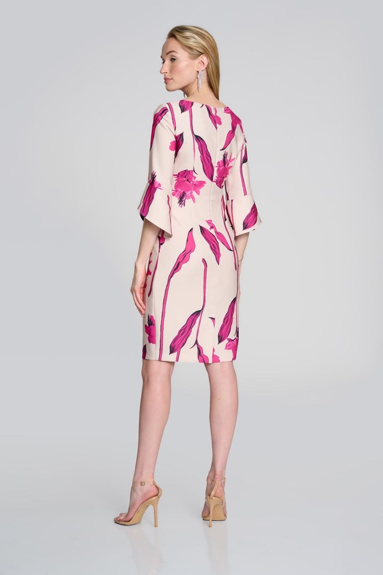 Woven Twill Floral Print Sheath Dress- Light Sand/Pink