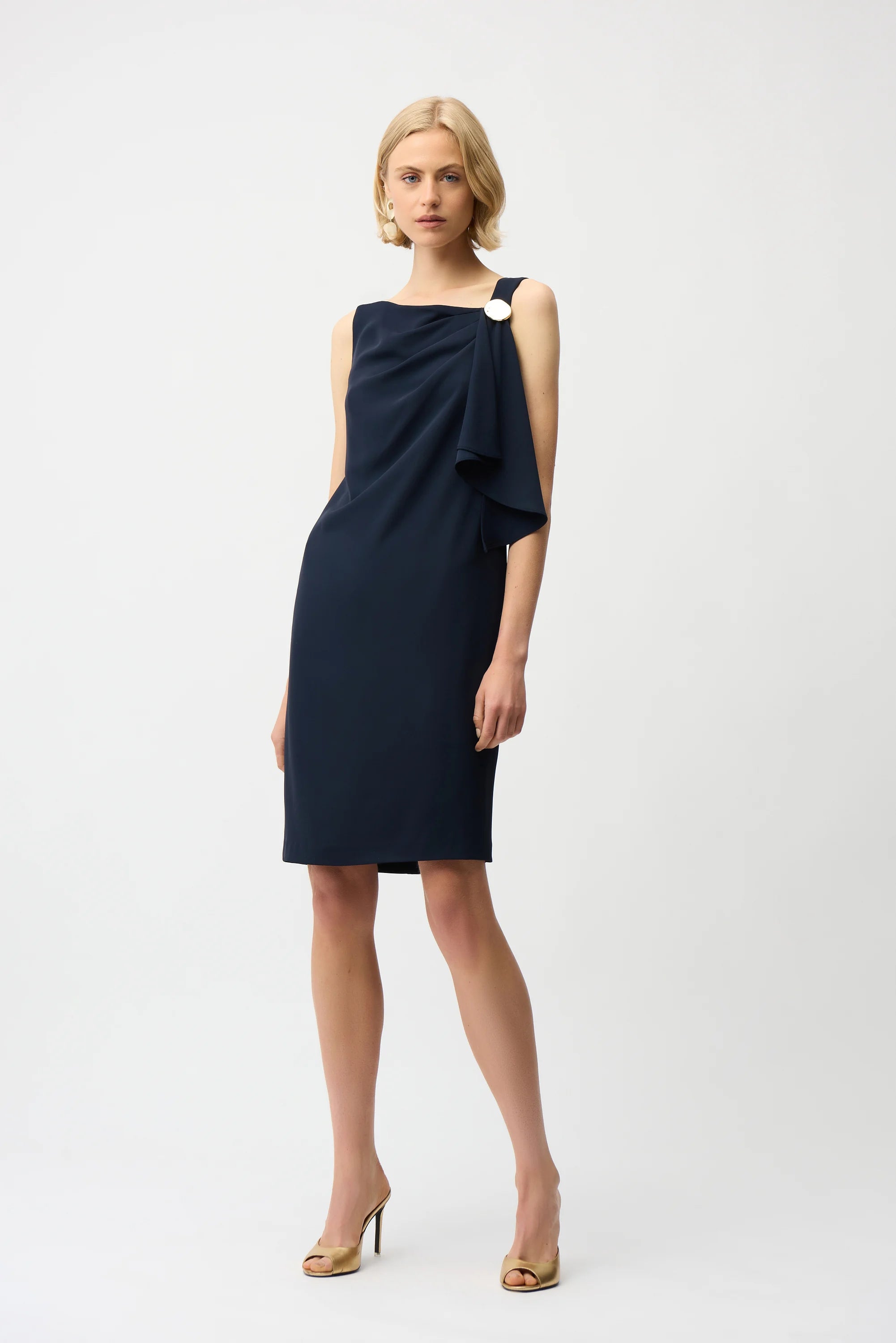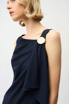 Woven Twill Shift Dress With Asymmetrical Neckline- Midnight Blue
