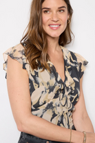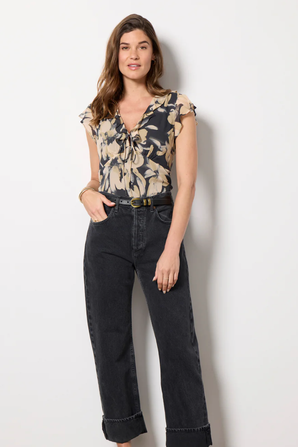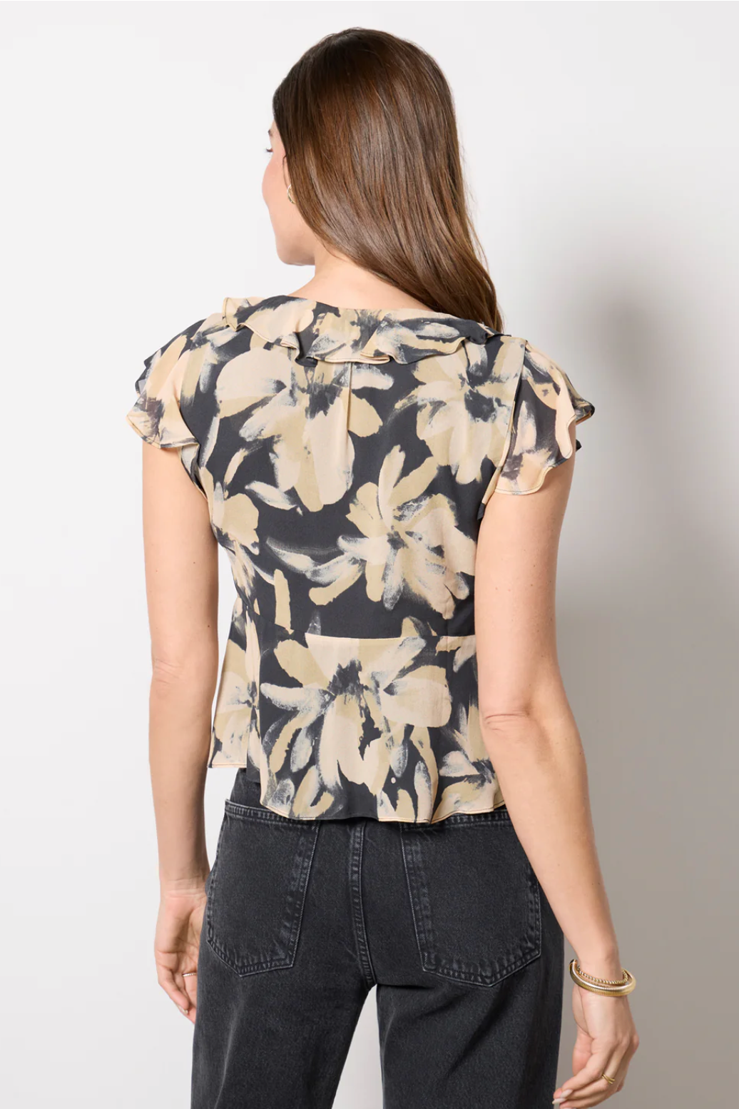 Elevate your night-out look with the Carmine Top by Rails. Finished in floral chiffon fabric, this chic top features feminine flutter sleeves and a ruffled neckline with a tie detail.