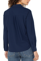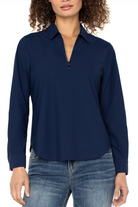 Long Sleeve Collared Zip Front Knit Shirt- Dark Navy