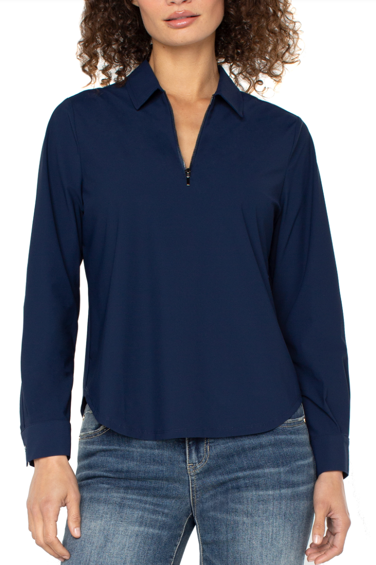 This collared long sleeve is finished with a sleek half-zip front and button cuffs for a modern twist on the everyday shirt. The versatile layer you’ll wear from desk to dinner, styled solo or under a jacket.