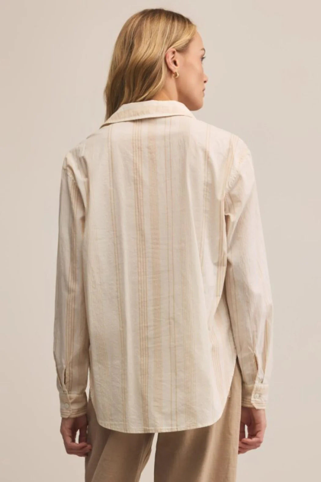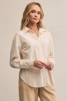 Seaport Striped Button Up- Biscuit