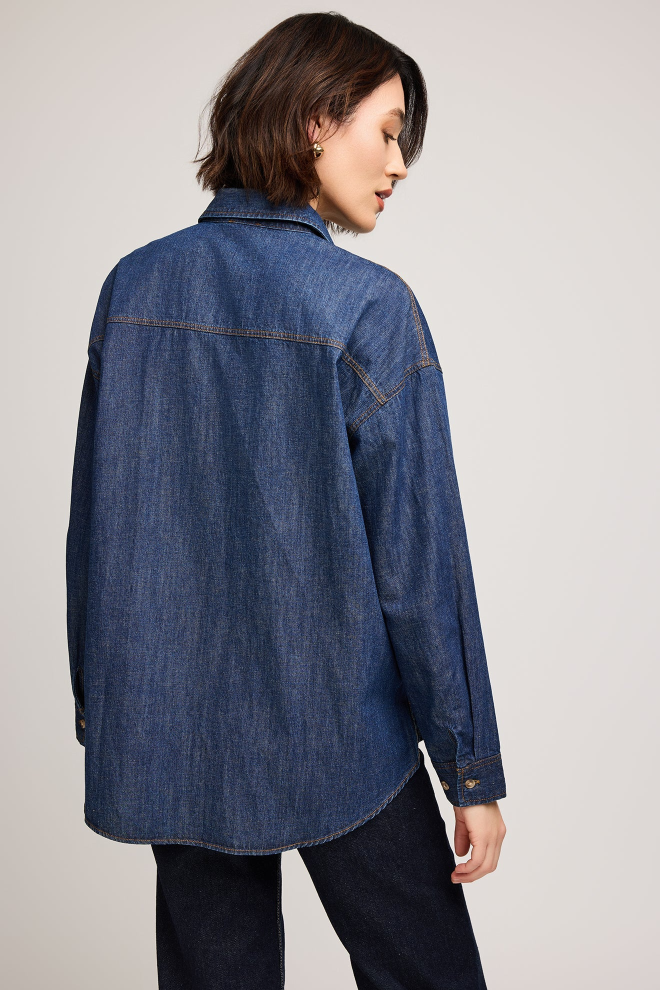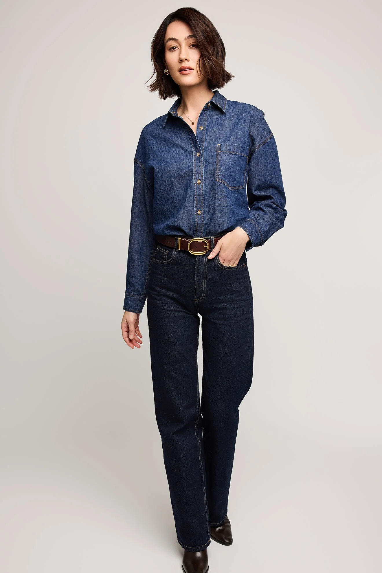 The Whitney button-down shirt is made of a denim fabric that has been specially washed for a perfectly lived-in look. Features include a patch pocket and side slits.