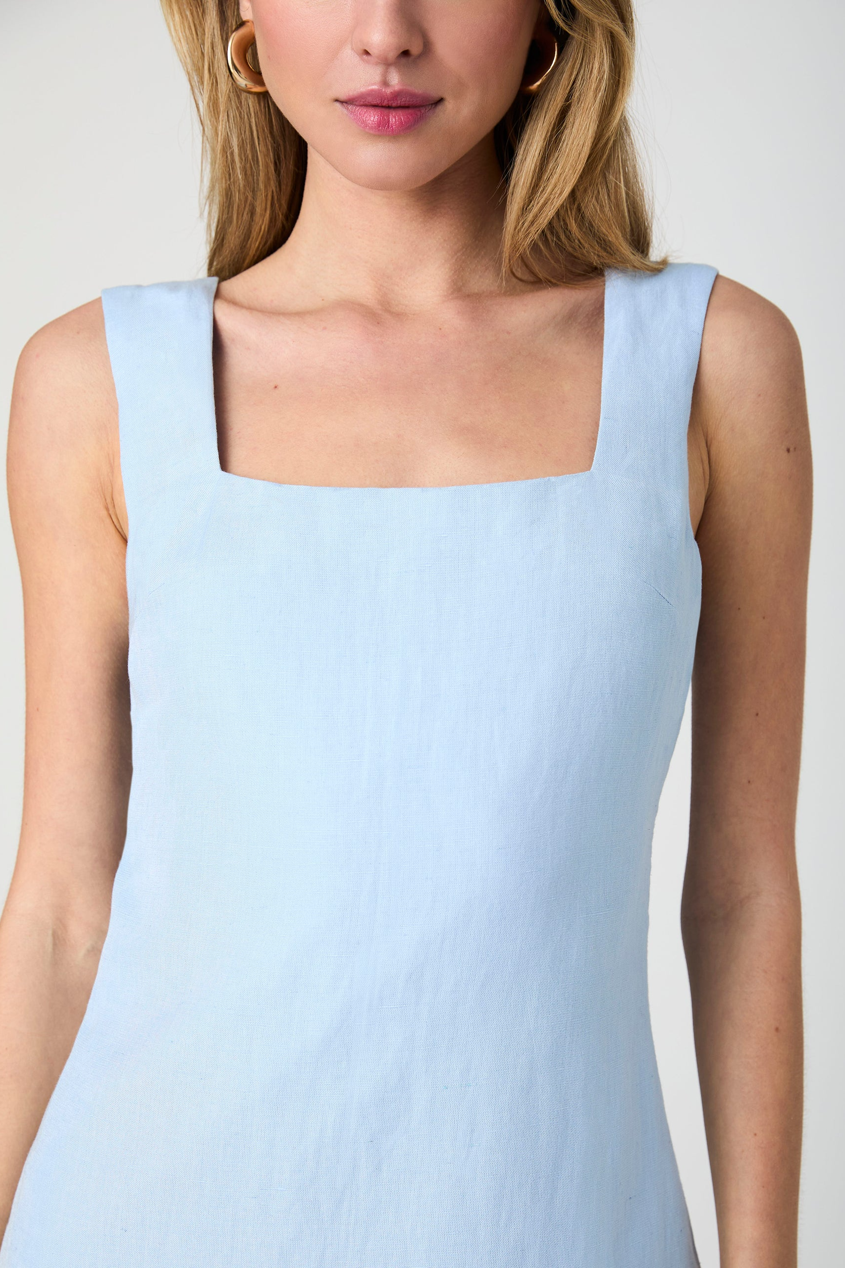 Birdie Linen Square Neck Mini Dress- Cashmere Blue