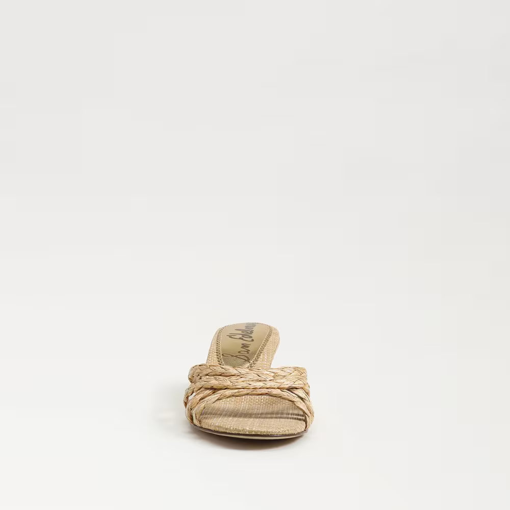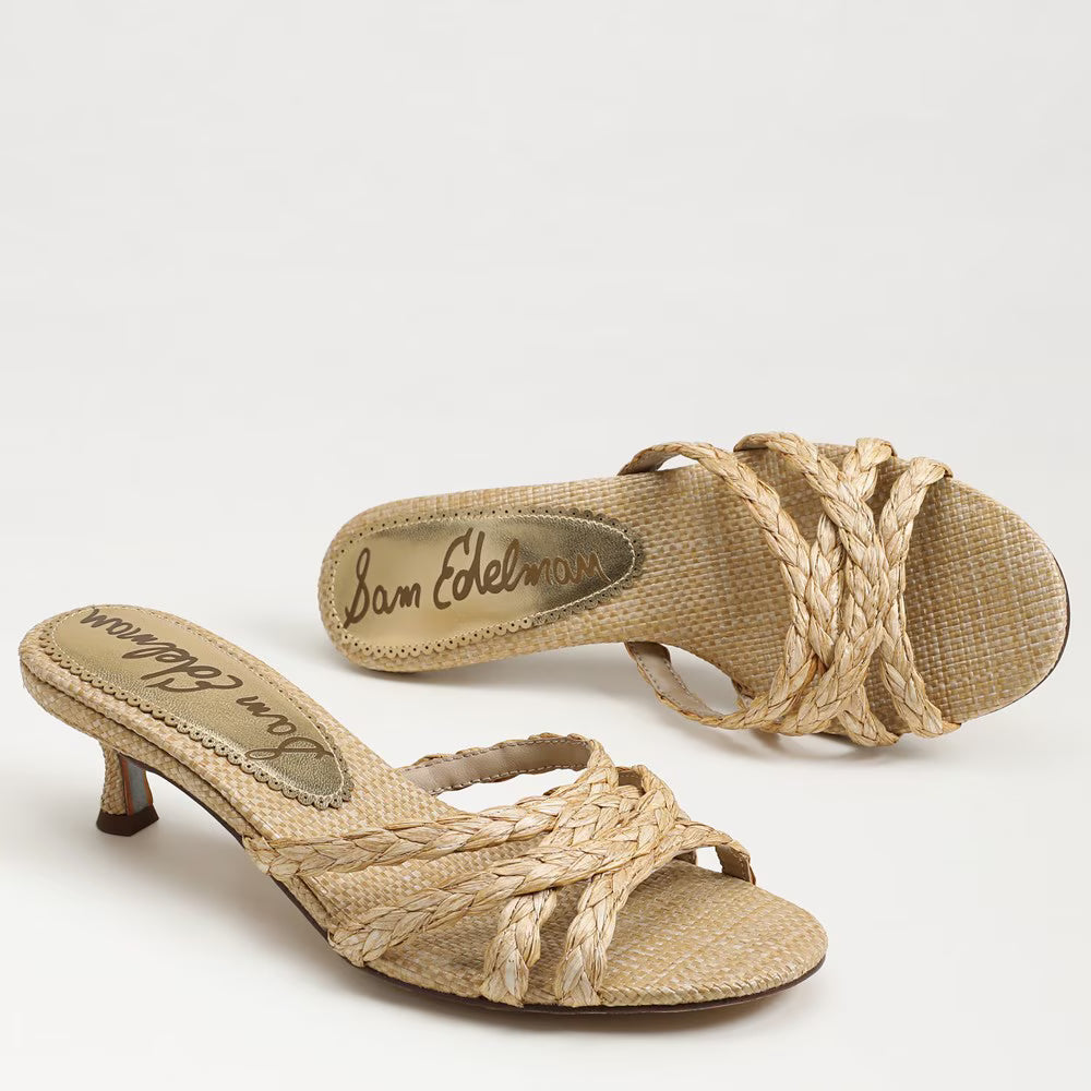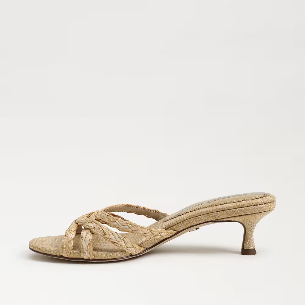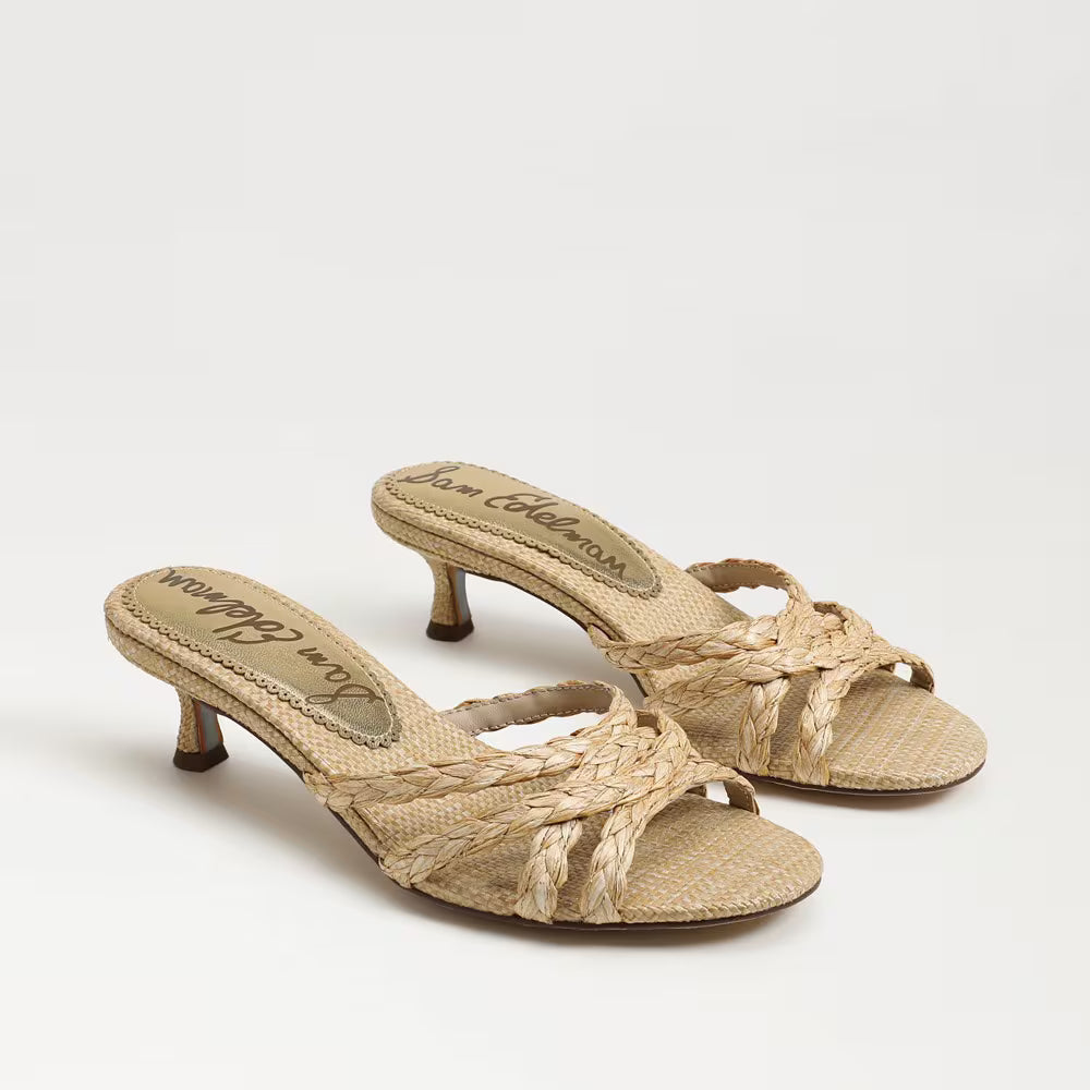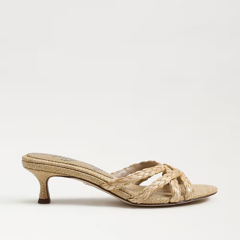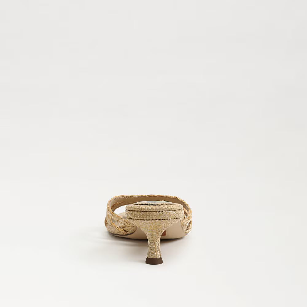 Camille Kitten Mule Heel- Bleached Beechwood Faux Raffia