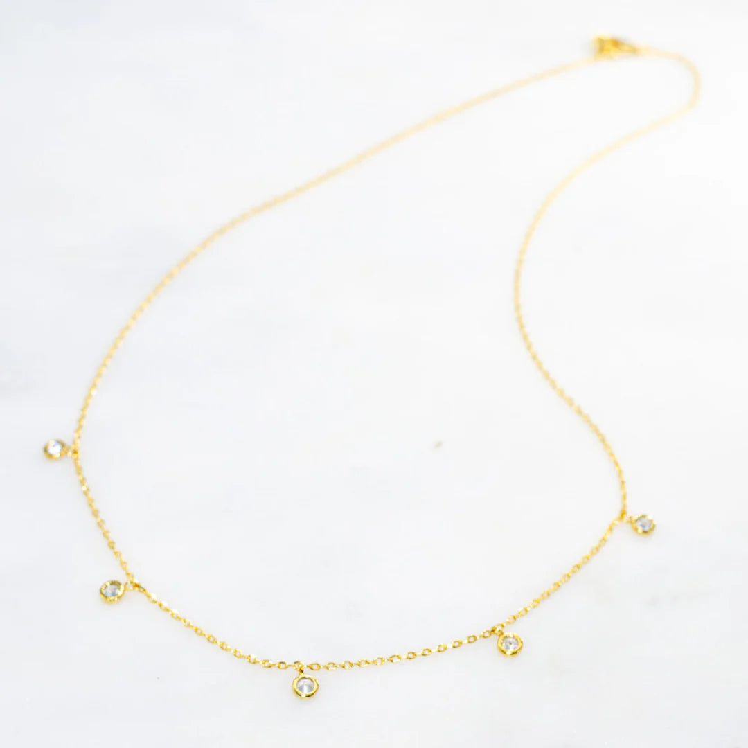 Shine a little brighter ✨. Our CZ Drop Necklace features a brilliant cubic zirconia accent on electroplated brass, crafted to elevate any outfit with effortless sparkle. At 17" long, it sits beautifully on the neckline, perfect for daily wear or a polished night-out look.