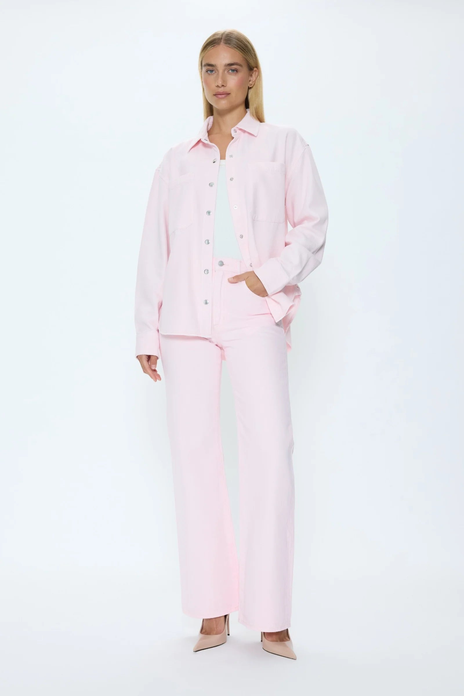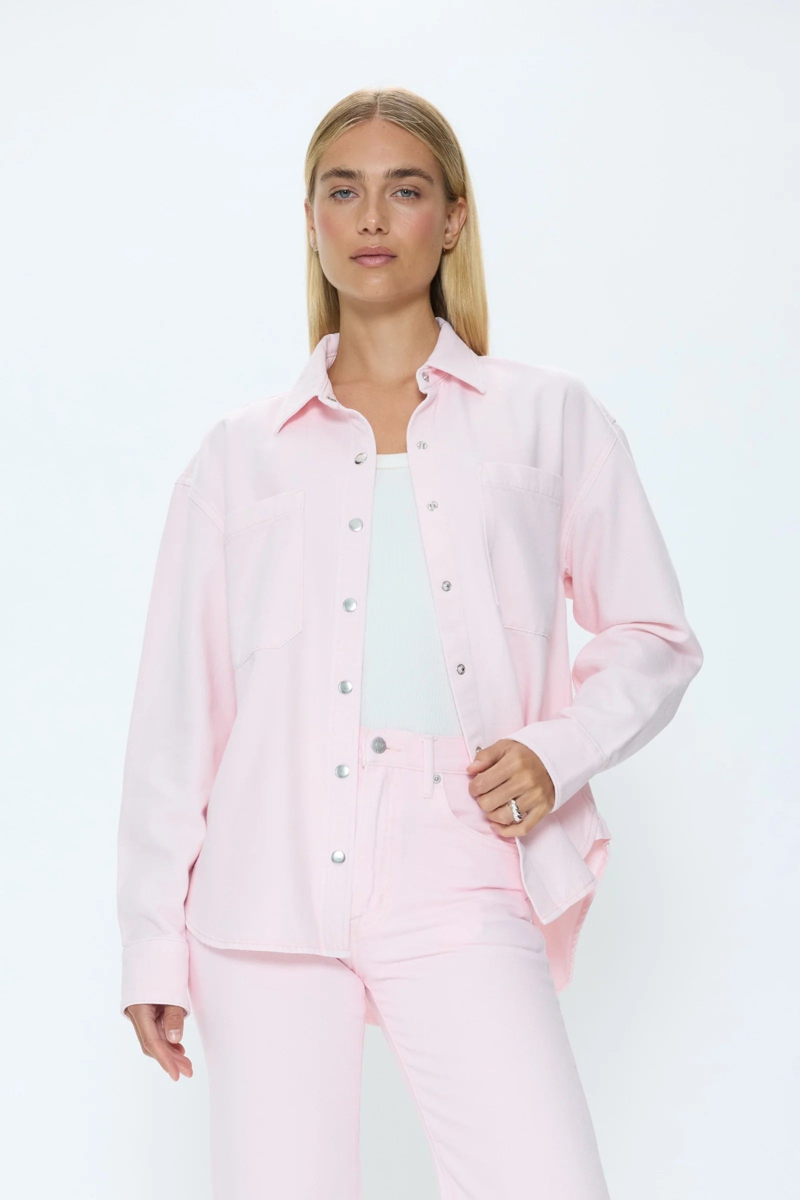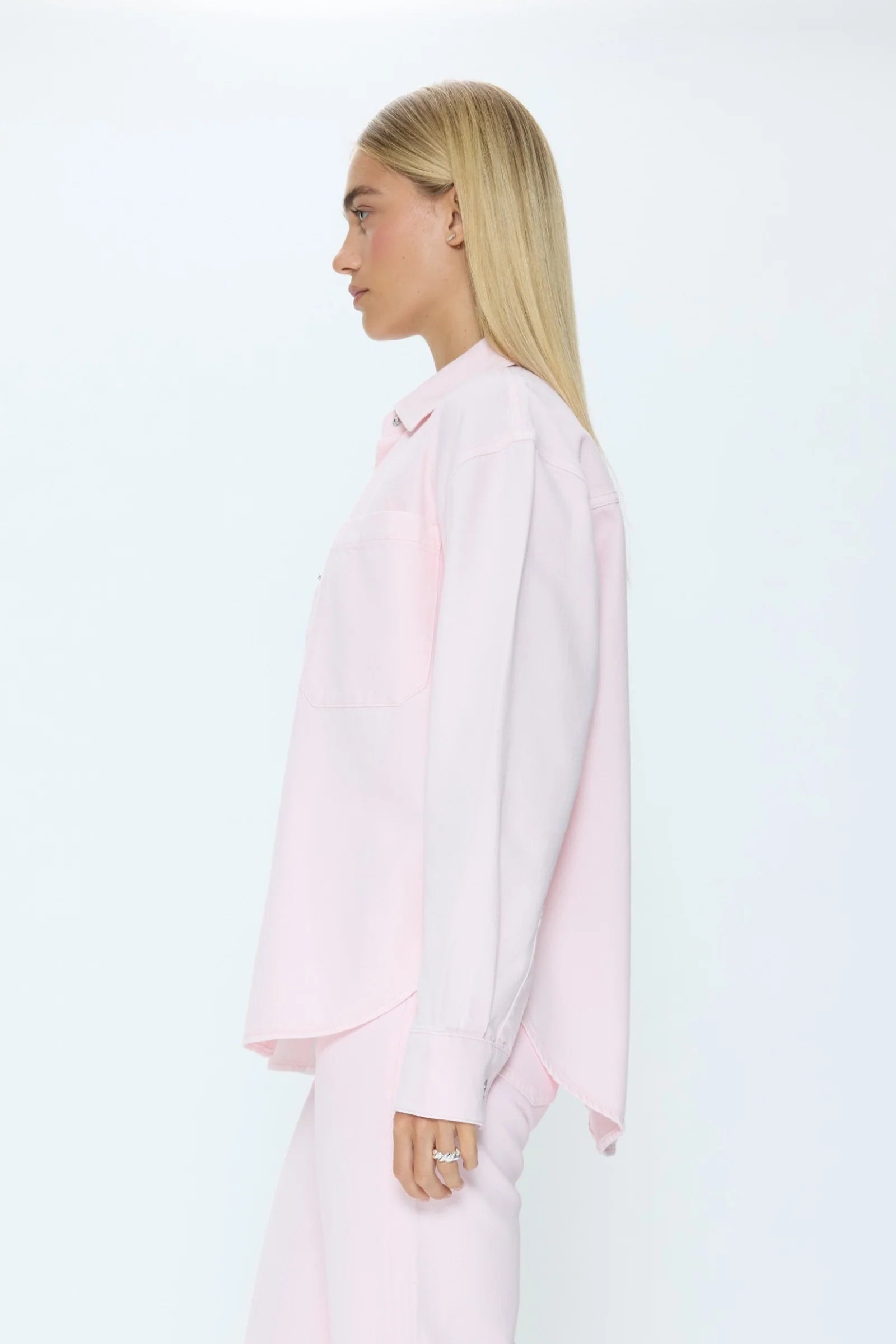 Elin Fluid Denim Shacket- Blush