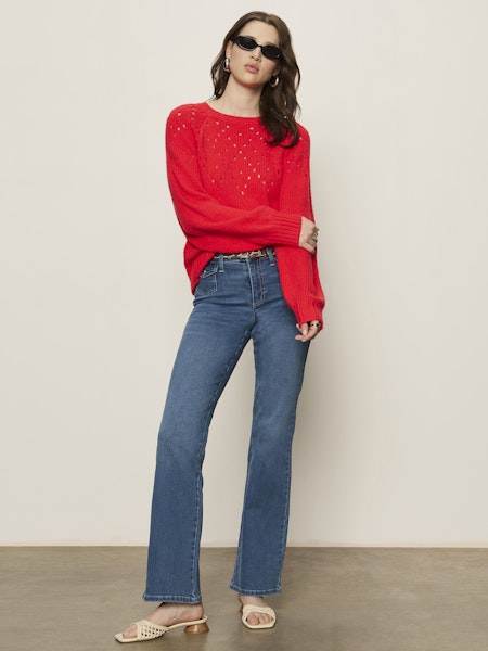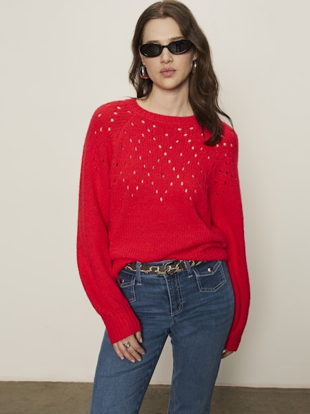 An easy statement knit with just the right amount of texture. This lightweight sweater features a classic crew neckline with openwork detailing across the chest for subtle interest and breathability. Designed with a relaxed fit and finished with ribbed cuffs and hem, it drapes effortlessly for an everyday-cool look. Perfect with denim now and layered into transitional seasons later.
