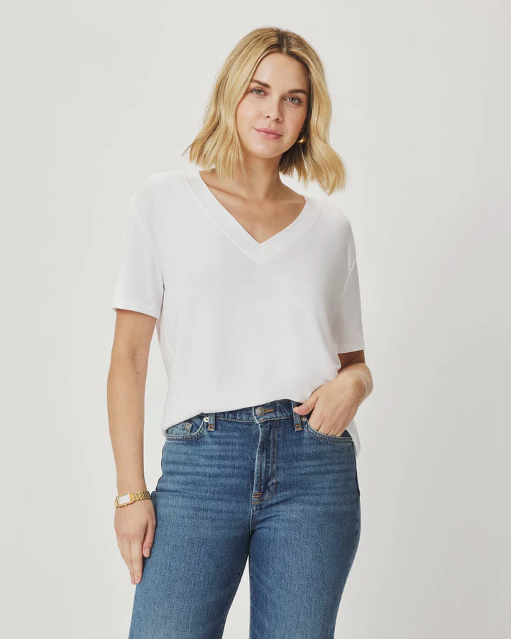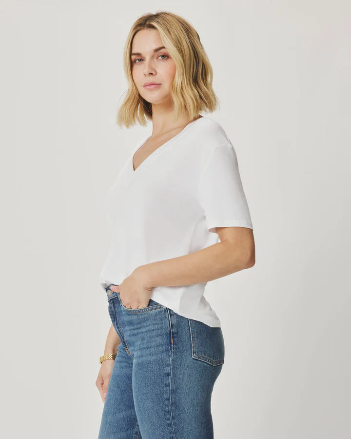 Kacey Bamboo Blend V-Neck Tee- White