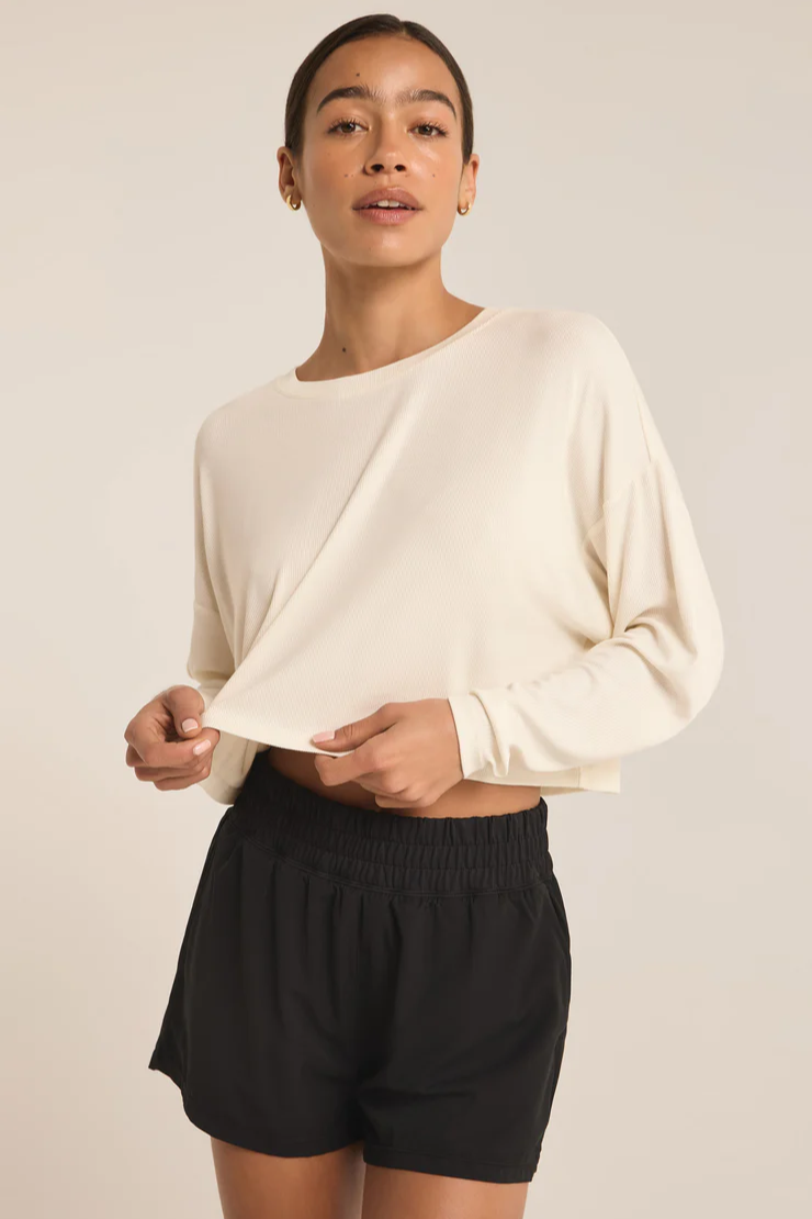 Say hello to ultimate comfort with this cropped crew neck long sleeve, made from the softest rib fabric and featuring a dropped shoulder design. Perfect for any casual outing, this top is your new go-to for effortlessly chic active style.