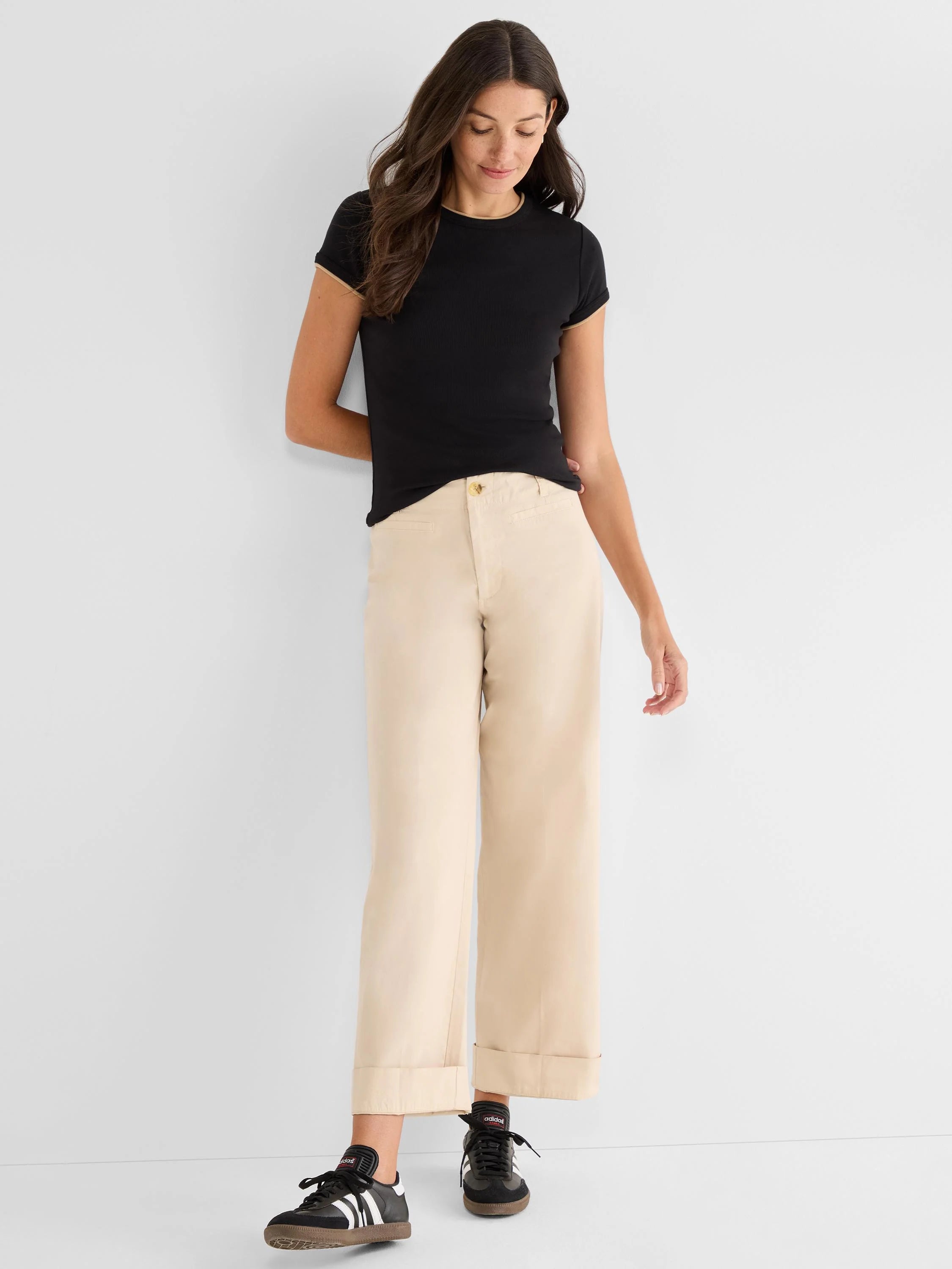 Tired of see-through tees? Our Perfect Knit Rib Double Layer Tee is here to help. Made from a thick knit, this top has fully opaque without the bulk of added fabric. A ribbed texture and contrast trim add interest and depth to the slightly form-fitting shape.