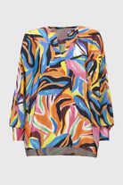 Make a lasting impression in this stunning satin top. Tailored in a boxy silhouette, the fabric displays a vibrant abstract print accentuating the garment’s unique appeal. The shirt collar and long dolman sleeves with cuffs and shank buttons pair perfectly to create a polished look.