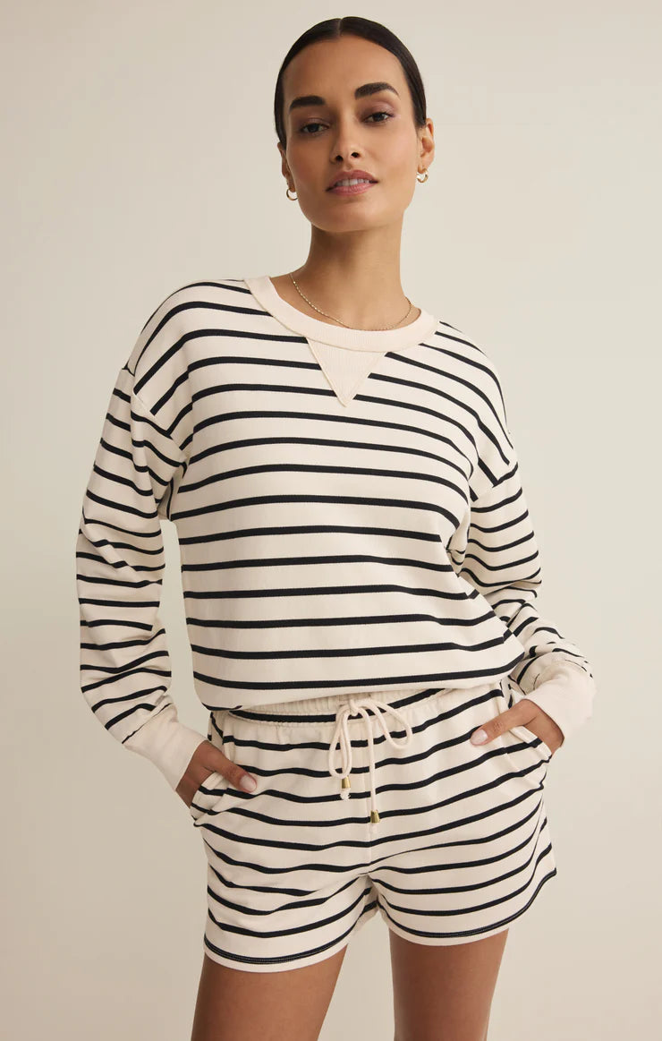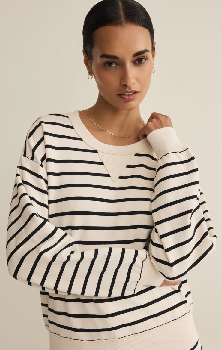Stand Out Striped Modal Sweatshirt- Crystal