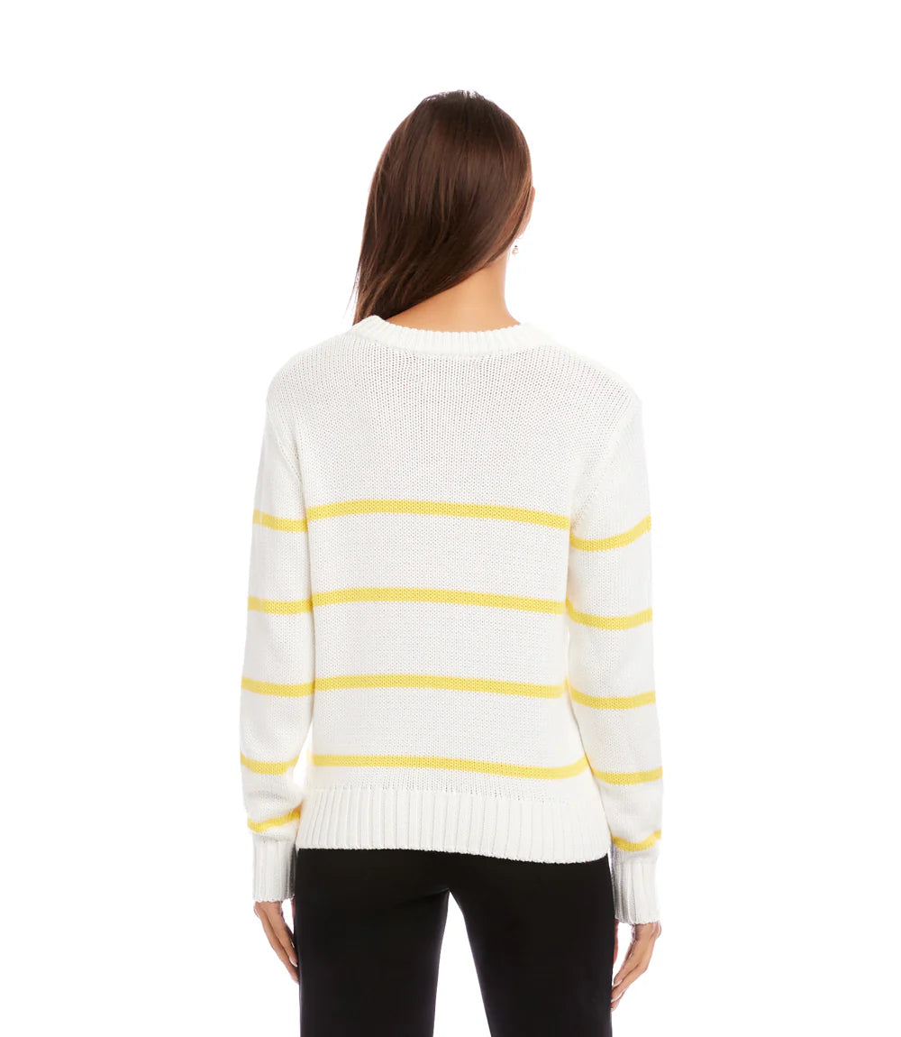 Stripe Crewneck Sweater- Off White w/ Lemon