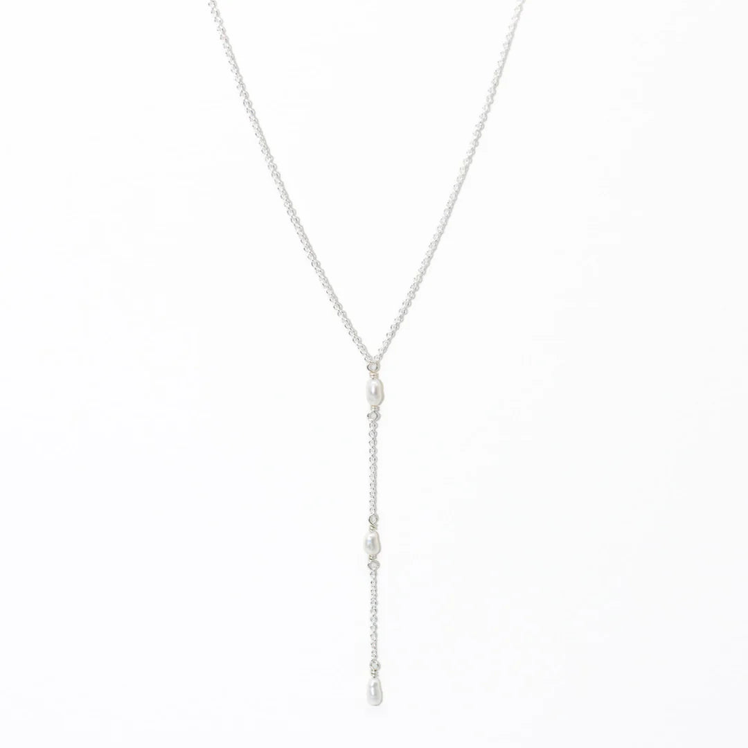 A delicate and timeless pearl lariat necklace featuring three petite pearls. Designed with a 17-inch chain, a 2-inch extender, and a 2-inch drop, it’s thoughtfully made to be comfortable, hypoallergenic, and perfect for kids, teens, and adults alike.