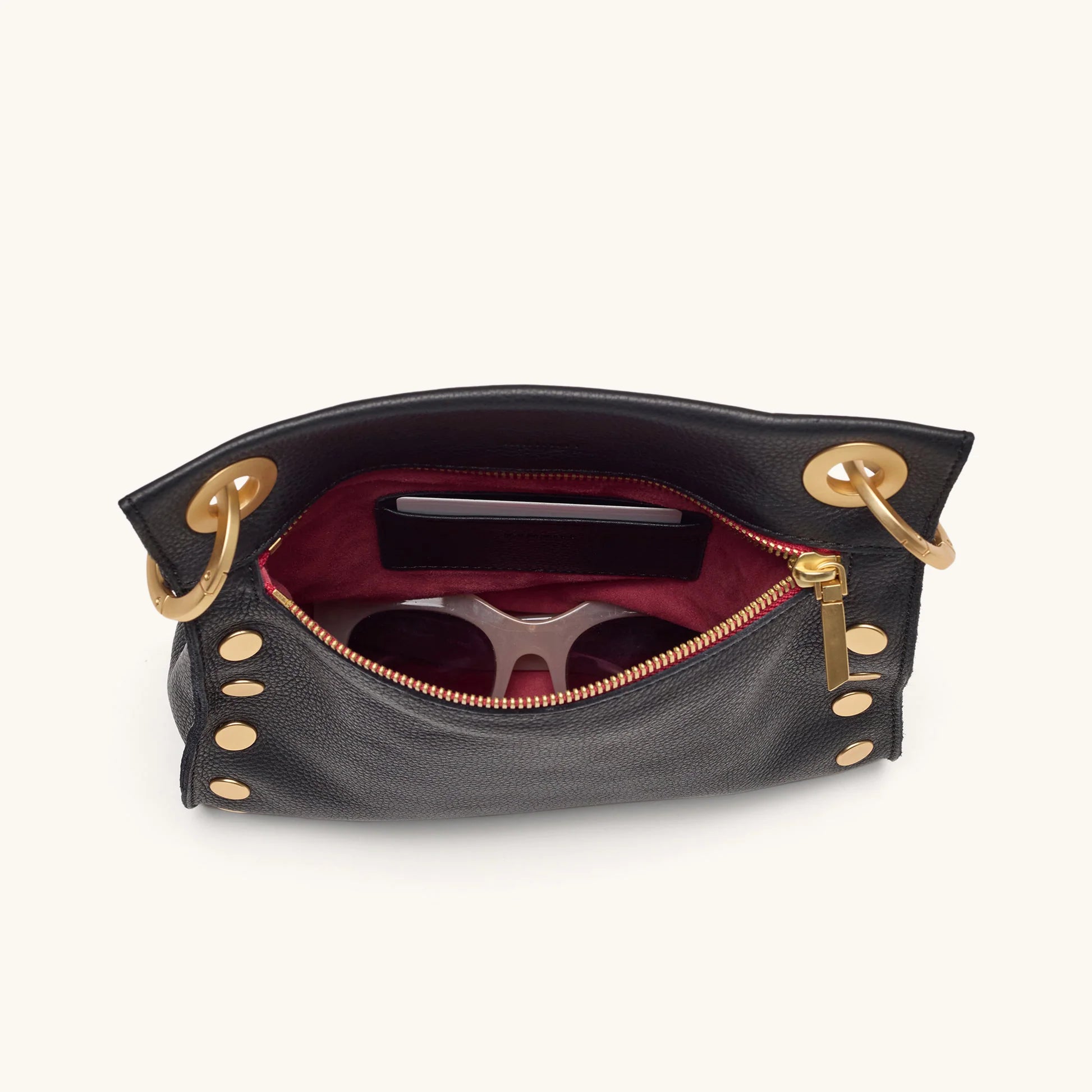 Tony Medium Purse- Black/Brushed Gold Red Zip