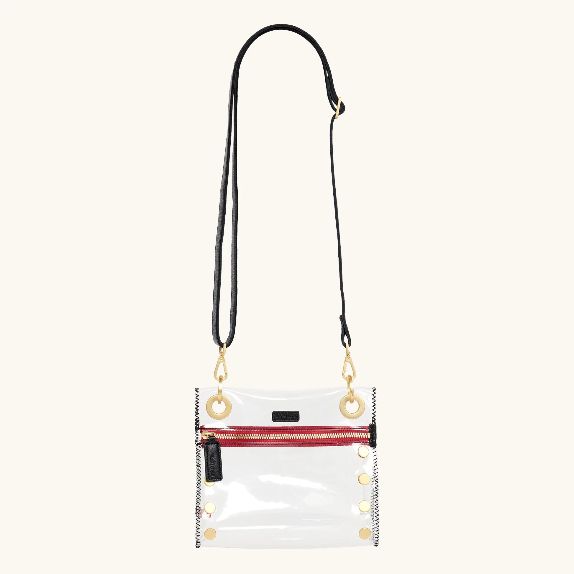Tony Small Clear Bag- Clear Black/Brushed Gold Red Zip