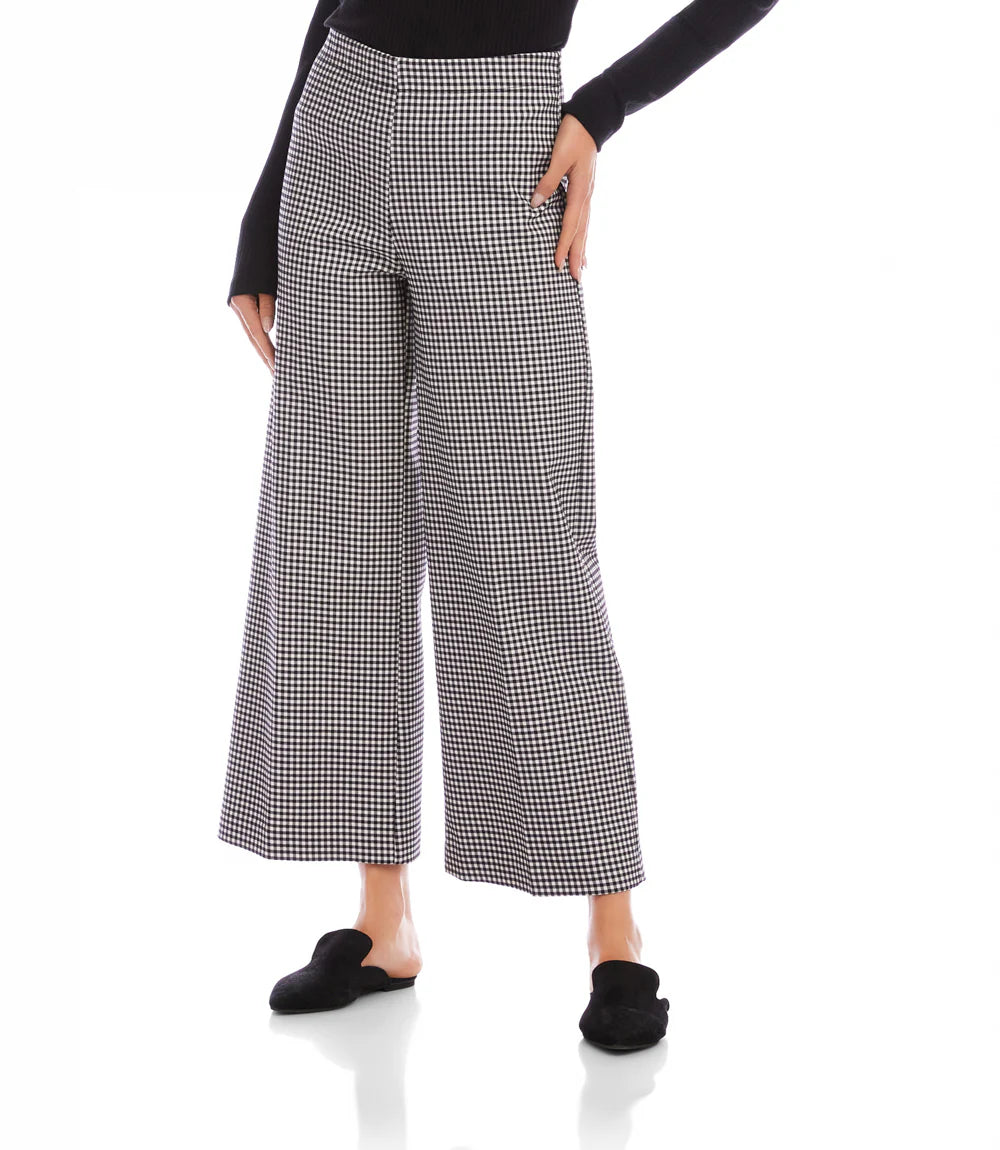 These cropped wide-leg pants are crafted from a yarn-dyed check stretch woven fabric and designed with an easy pull-on waist for comfort. The cropped silhouette and wide leg create a modern, polished look with effortless movement.
