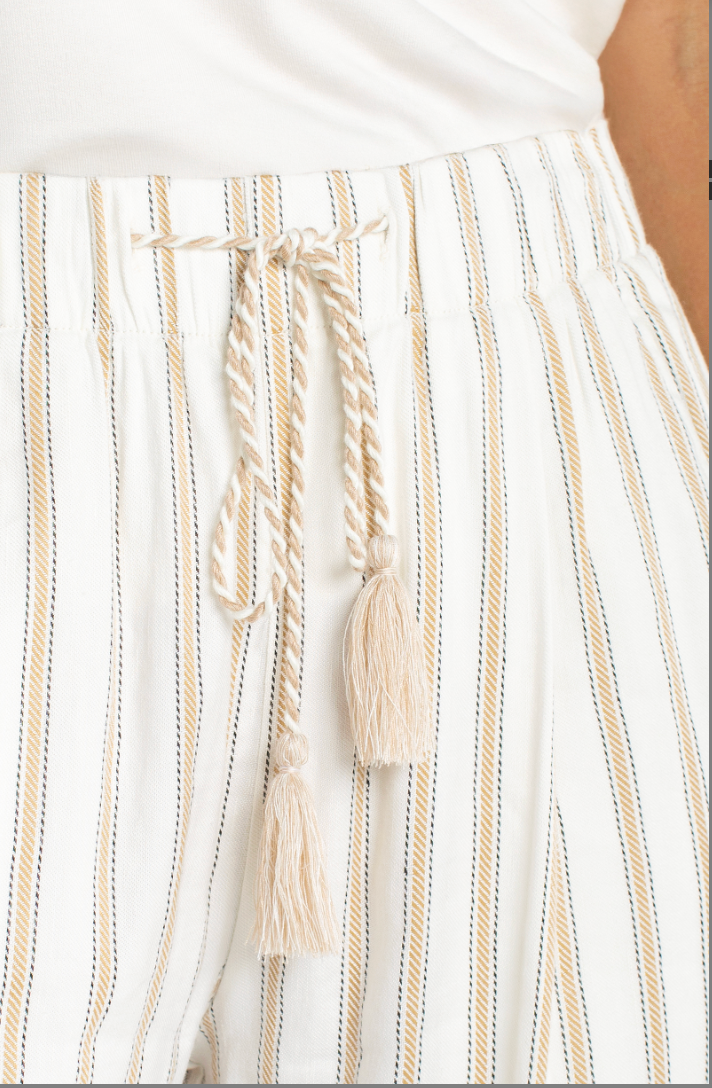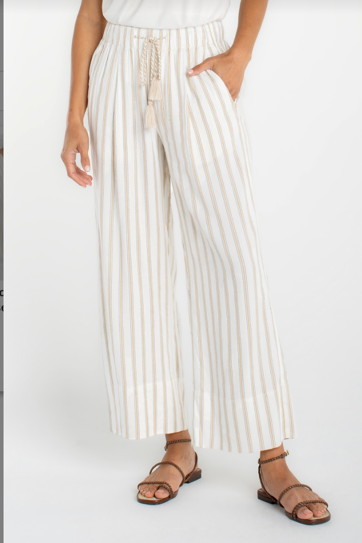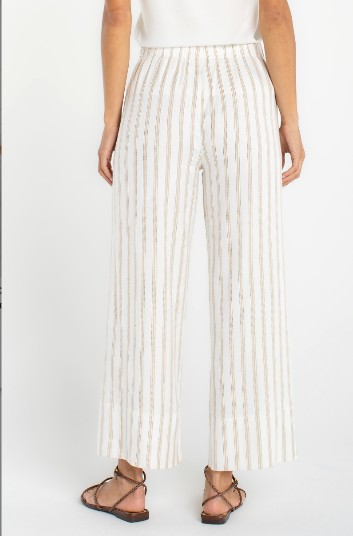 Wide Leg Pull On Crop Trouser- Cream/ Tan